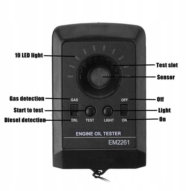 Прибор используется для анализа состояния моторного масла и оценки рекомендаций по его замене или нет. Тестер использует десять светодиодов для индикации уровня загрязнения и повышенной кислотности моторного масла.