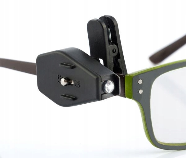 Светодиодный зажим легко крепится к оправе очков и вращается на 360°.