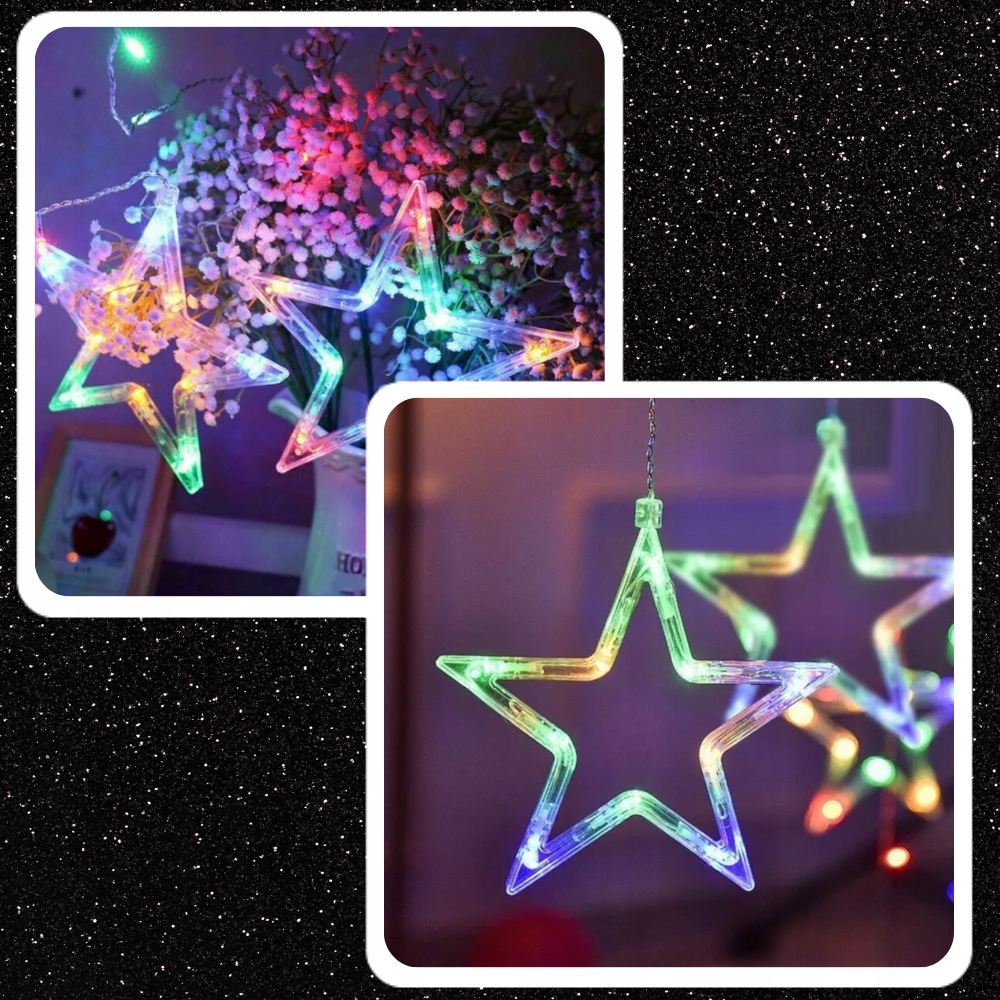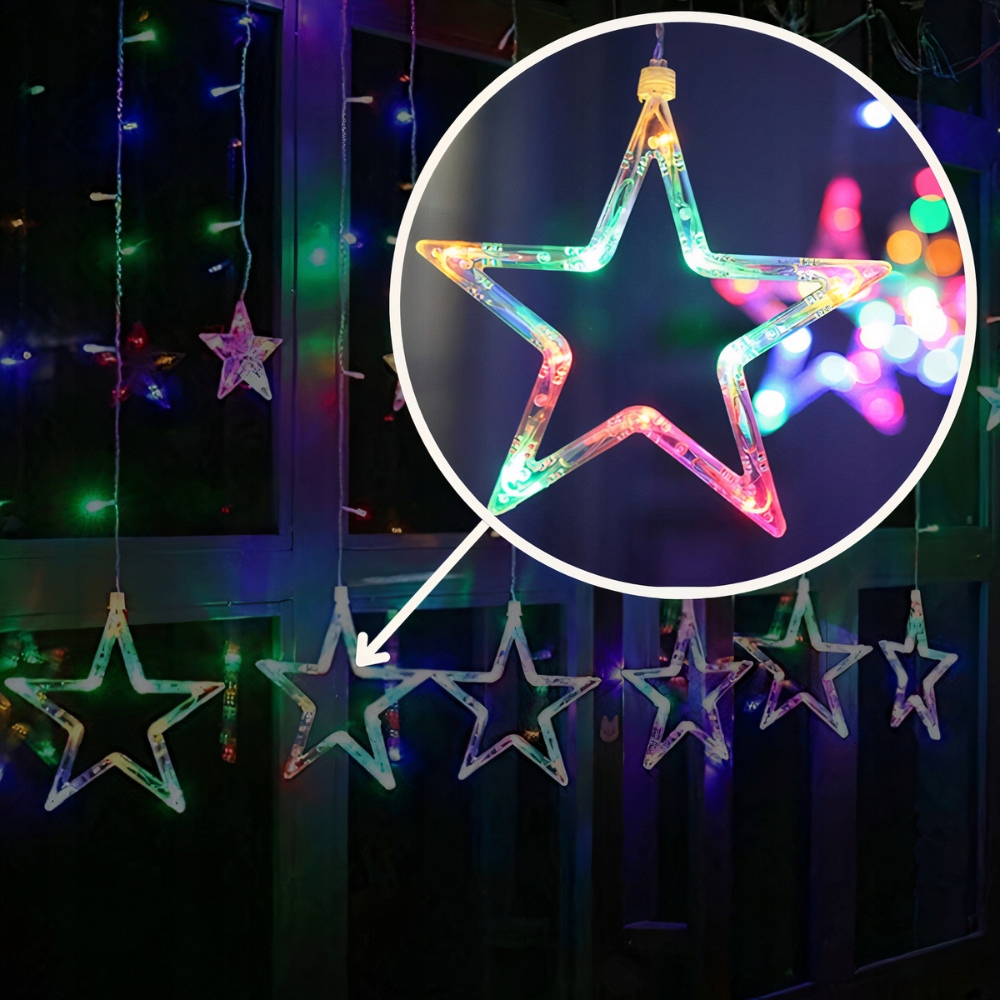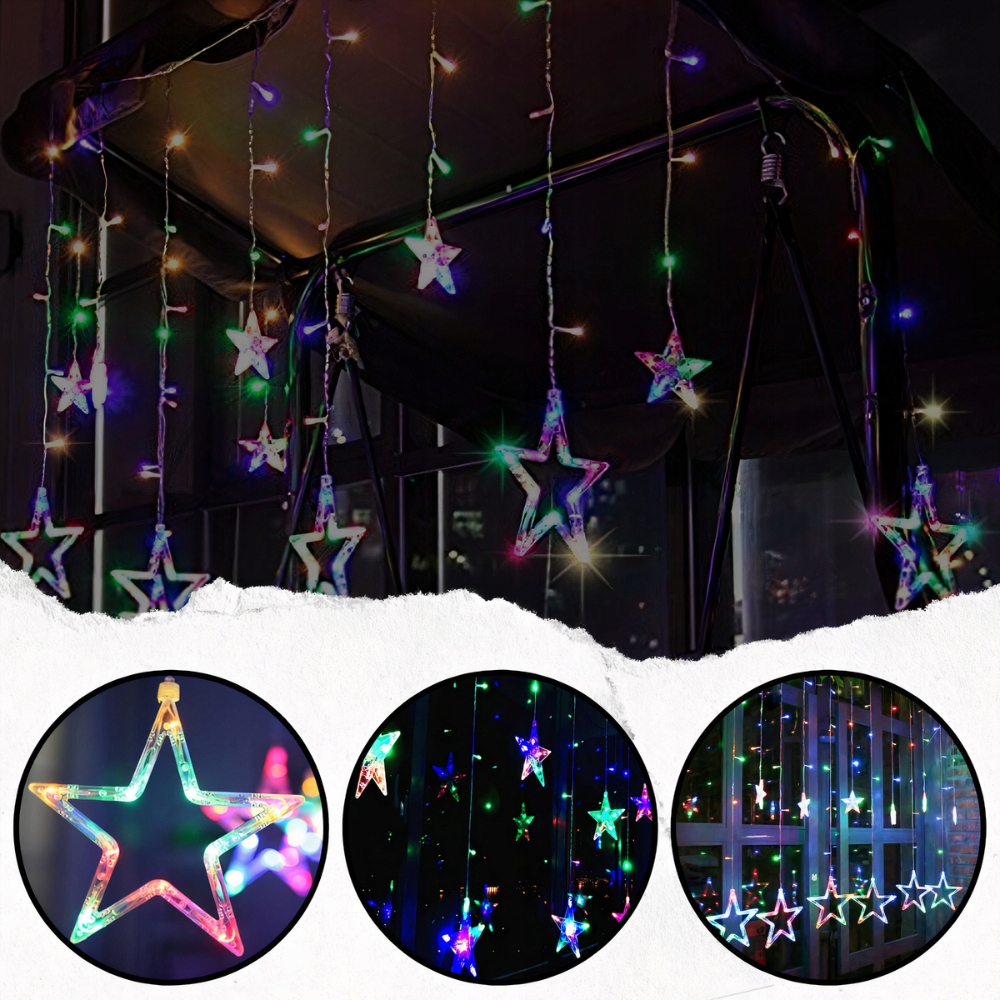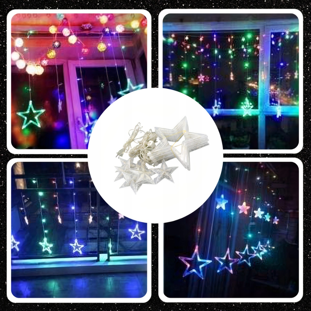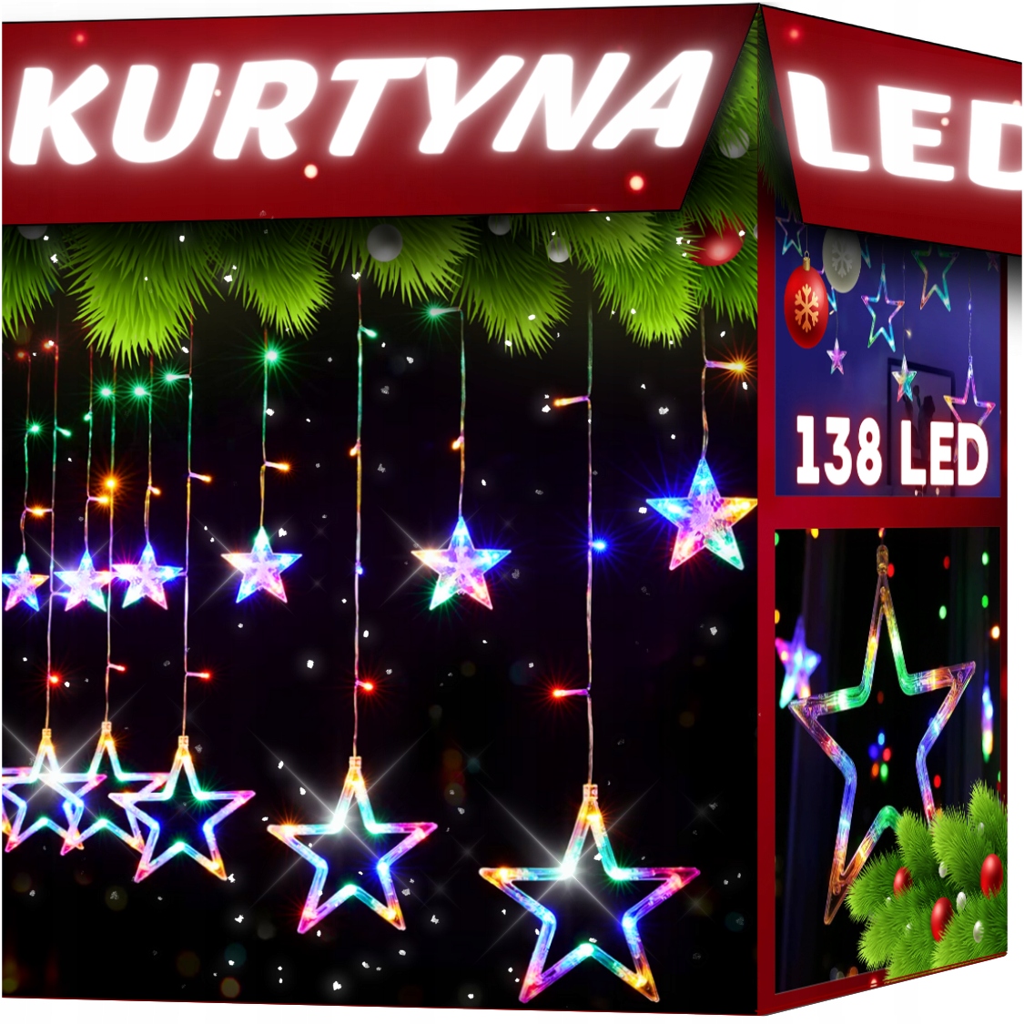 СВЕТОВАЯ ЗАВЕСА ПОДВЕСНАЯ РОЖДЕСТВЕНСКИЕ СВЕТИЛЬНИКИ RGB ГИРЛАНД СО ЗВЕЗДАМИ 138 LED