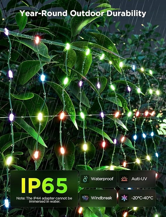 Благодаря классу IP65 защита, Govee H6810 наружные чистые светильники полностью устойчивы к дождю, пыли и другим плохим условиям, что делает их идеальными для внешнего года. Сплошная конструкция и экономичное потребление энергии означают, что Govee H6811 будет работать в течение длительного времени без обмена.