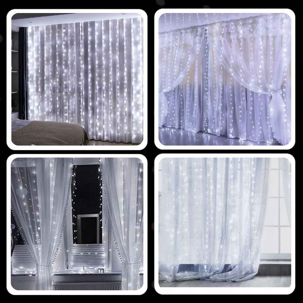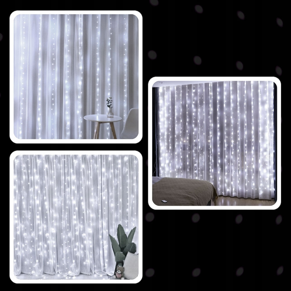 СВЕТОВАЯ ЗАВЕСА 300 LED ХОЛОДНАЯ 3x3 ЕЛОЧНАЯ ГИРЛЯНДИЯ USB 5V + ПУЛЬТ ДИСТАНЦИОННОГО УПРАВЛЕНИЯ