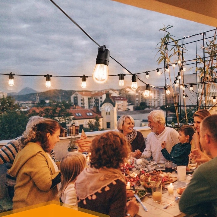 Наша гирлянда практически не издает шума и при этом радует глаз своим теплым светом, который удачно создает уютную атмосферу. Кроме того, он хорошо будет работать на открытом воздухе, где украсит сад независимо от погодных условий, благодаря соответствующей степени водонепроницаемости.