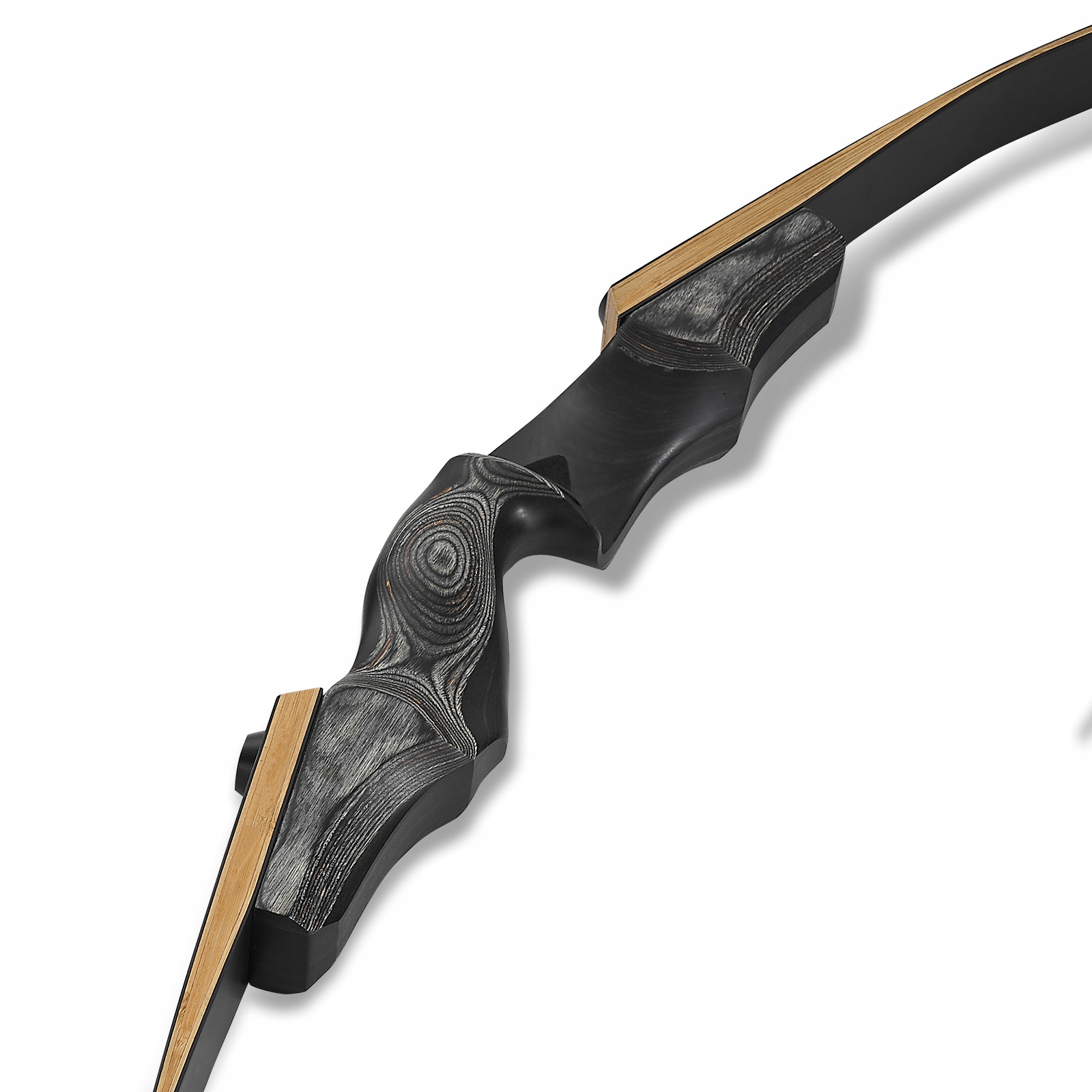 Арка с ударом с тейкдауном имеет округлую деревянную хватку, предлагающую удобное и элегантное чувство. Этот дизайн облегчает быстрое запуск работы и найти удобную сцепление. Профессиональные лучники также считают его стабильным, что позволяет им достичь лучших результатов.