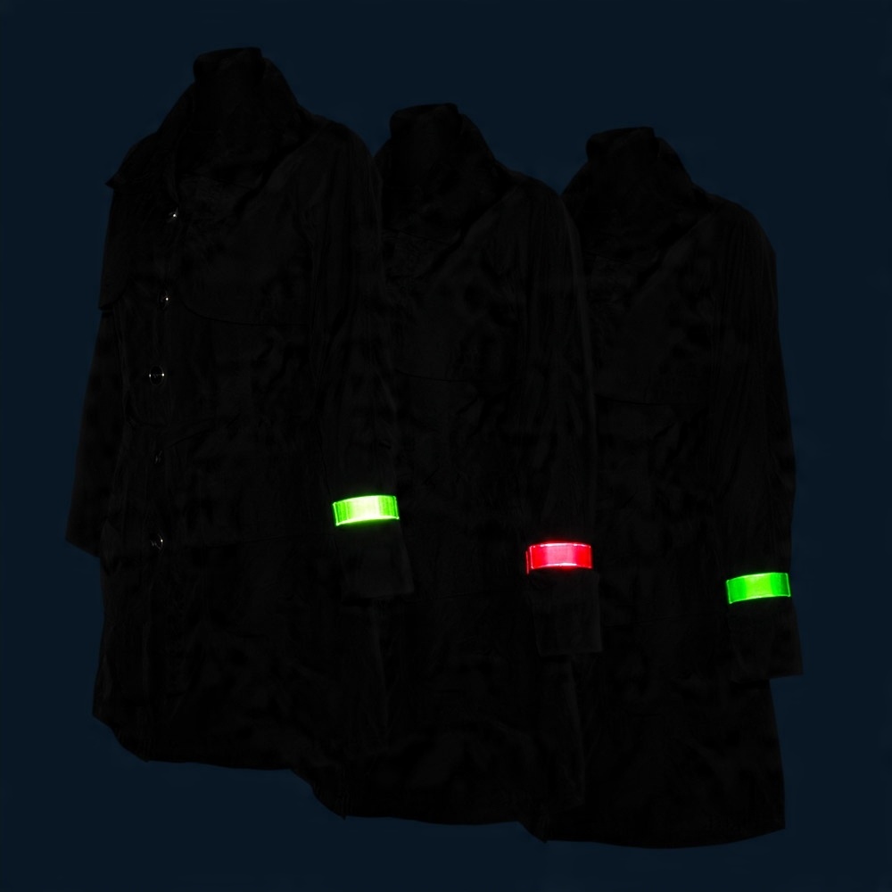 - Светоотражающие браслеты самоблокируются, их можно носить на руке или ноге. Повязка, конечно же, многоразовая.