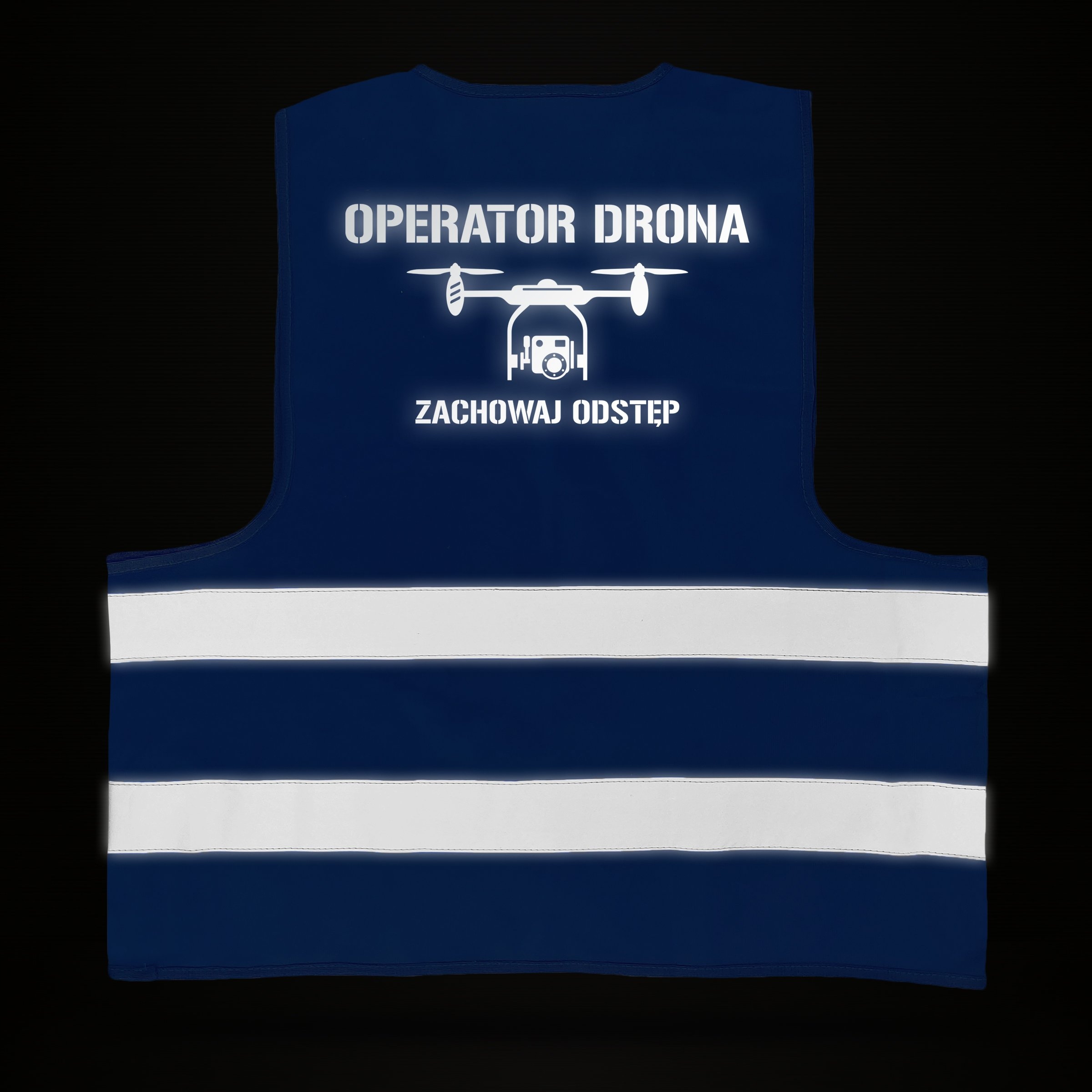 Рефлексивный жилет с печатью, посвященным операторам беспилотников . Более высокий вес 130 г/м² гарантии Высокая долговечность одежды и неприятности -бездействие в течение длительного времени. /b> Сделано из ленты липучки, которая позволяет настроить схему примерно на 3 см. Даже при слабом освещении.
