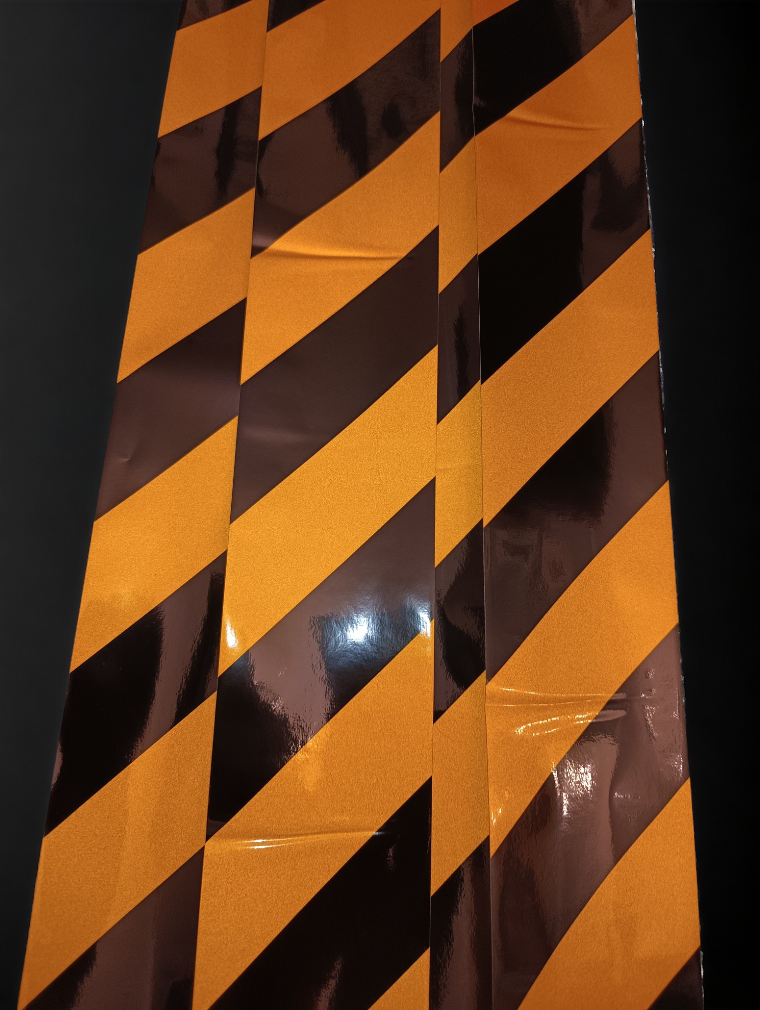 СВІТЛОВІДКЛЮЧАЮЧА жовто-чорна гладка САМОКЛЕЮЧА попереджувальна стрічка