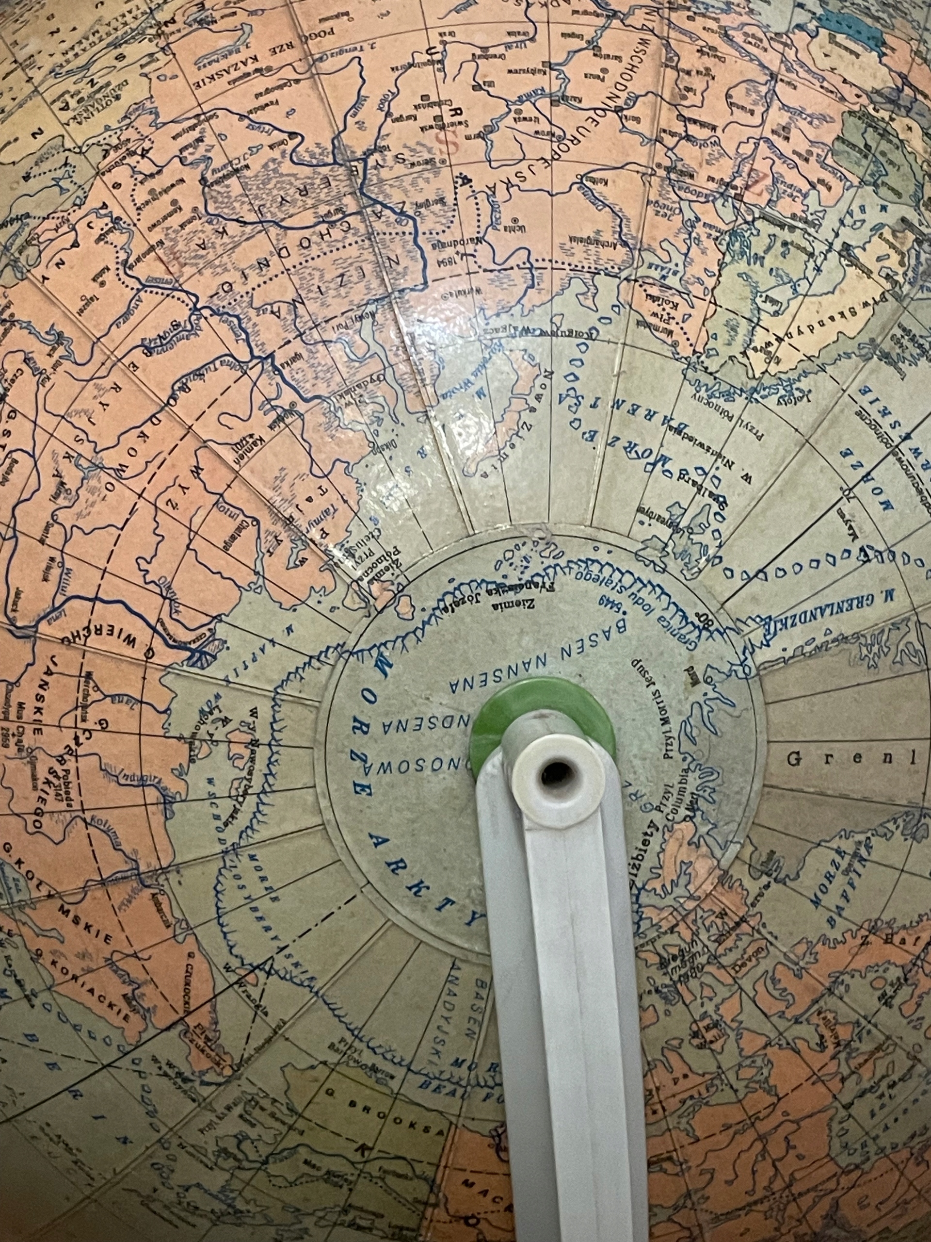 Состояние видно на фотографиях, глобус блестящий, точится довольно твёрдый, что говорит о необходимости незначительной консервации.На поверхности есть локальные изменения цвета, серьезных повреждений нет.