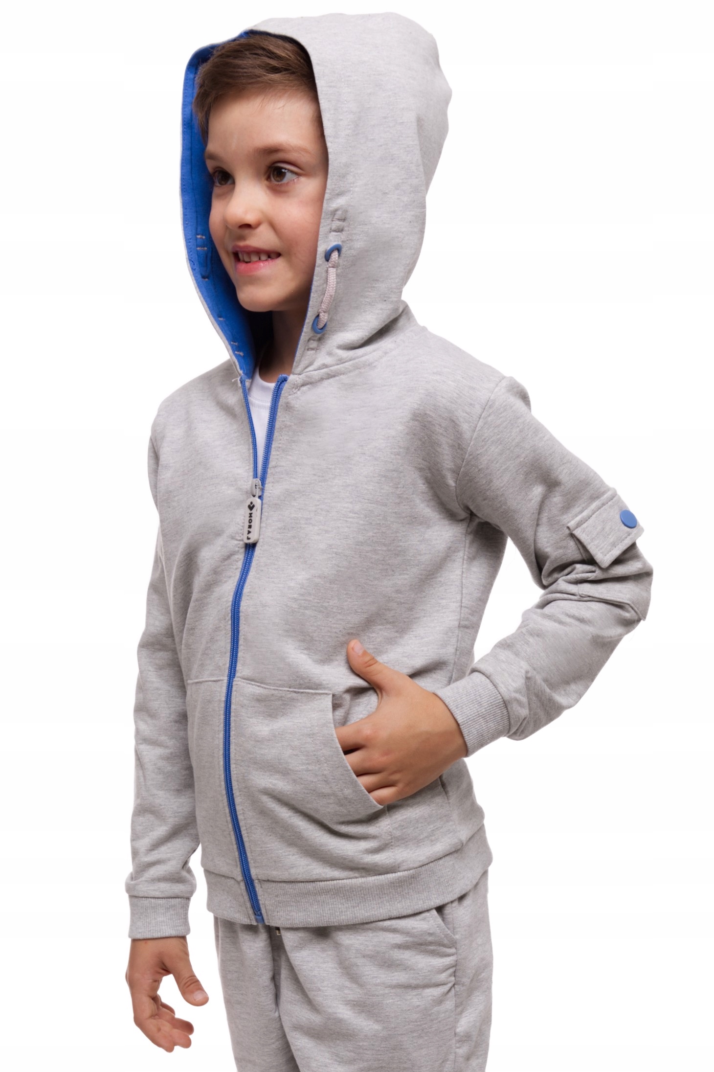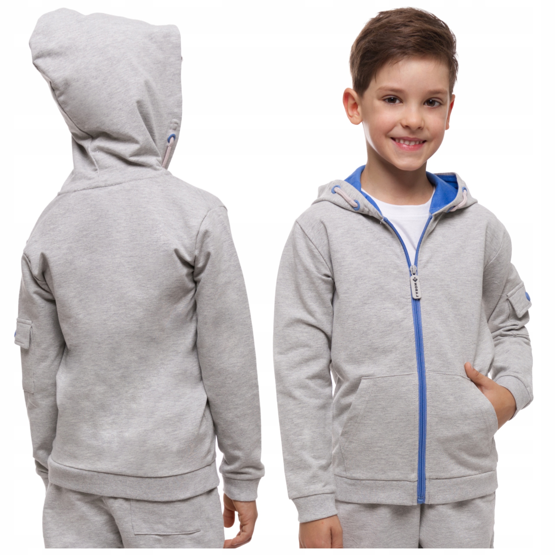 Толстовка для мальчика с карманами. Он мягкий и приятный на ощупь. Он изготовлен из высококачественного хлопка, который безопасен для аллергиков. Имеет практичную молнию и капюшон. Рукава заканчиваются манжетой.
