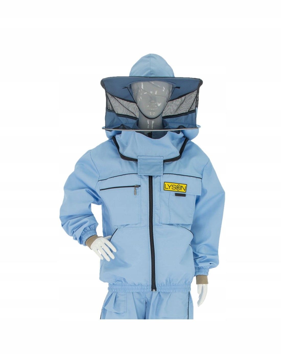 Толстовка оснащена шапочкой, защищающей голову и шею от укусов пчел. Шапка имеет сетку, обеспечивающую хорошую видимость и вентиляцию. Манжеты на рукавах и дополнительный материал, прилегающий к предплечьям, не позволяют пчелам попасть под одежду, что имеет решающее значение для безопасности пчеловода.