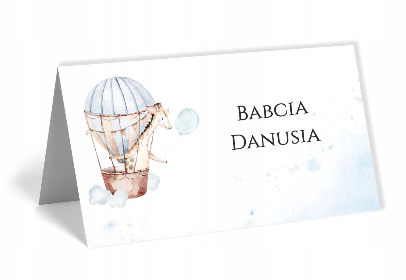 Изысканные виньетки на Святое Крещение вашего ребенка. На виньетках изображен жираф на воздушном шаре, выполненный в синем пастельном оттенке. Виньетки полностью персонализированы, выполнены на плотной атласной бумаге.