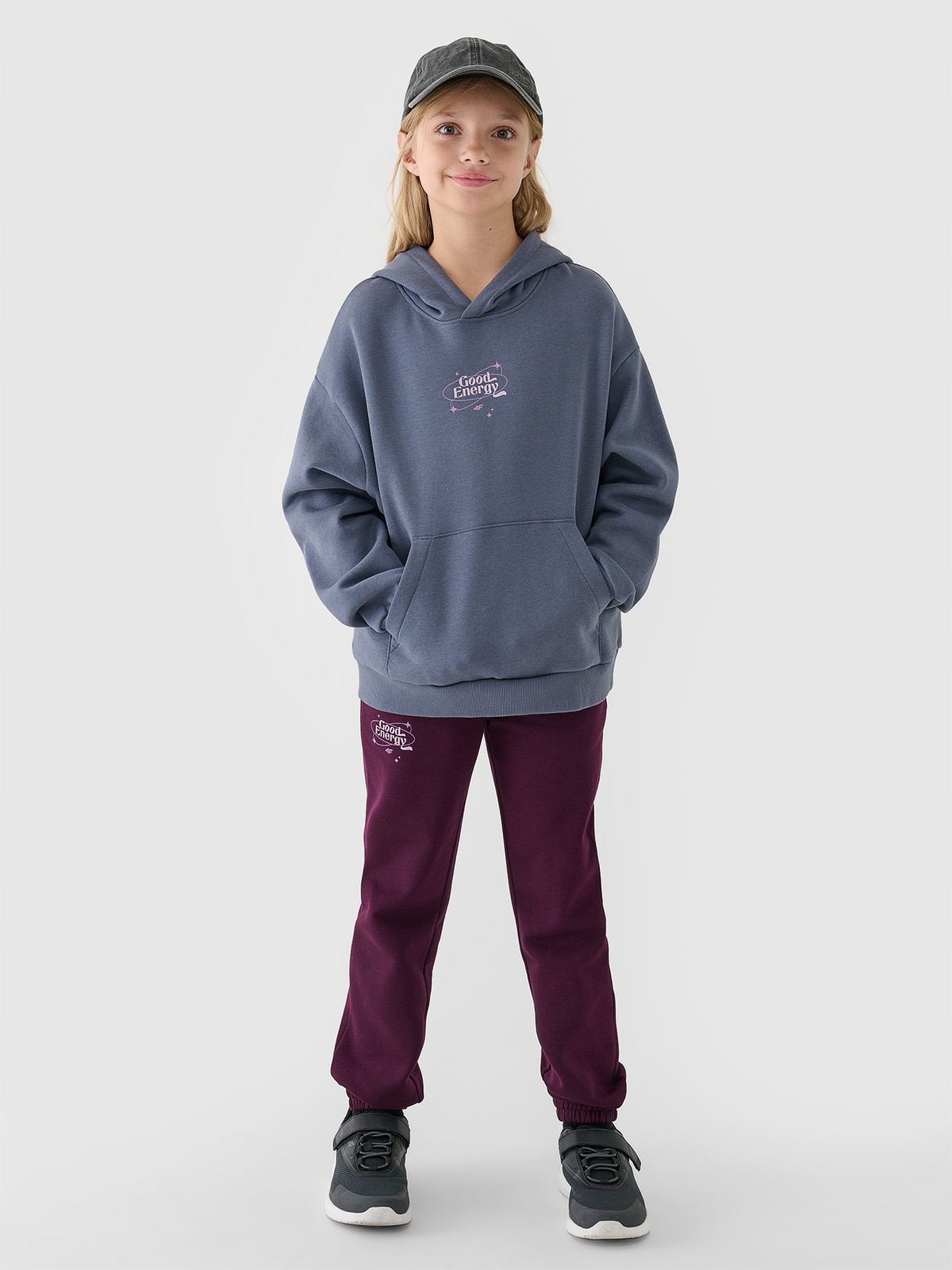 4f -спортивные костюмы для девушки, сделанной из среднего 280 вязаной одежды GSM, что делает их мягкими и воздушными. Мягкий, долговечный и приятный на ощупь. Добавление полиэстера (20%) означает, что материал поддерживает разреза и устойчиво к износу даже в течение многих сезонов. Внутренний интерьер гарантирует дополнительное тепло, которое делает брюки идеальным выбором для прохладных дней. Есть 2 открытых кармана по бокам. На ноге есть надпись «хорошая энергия». Гибкий ремень без регулировки.