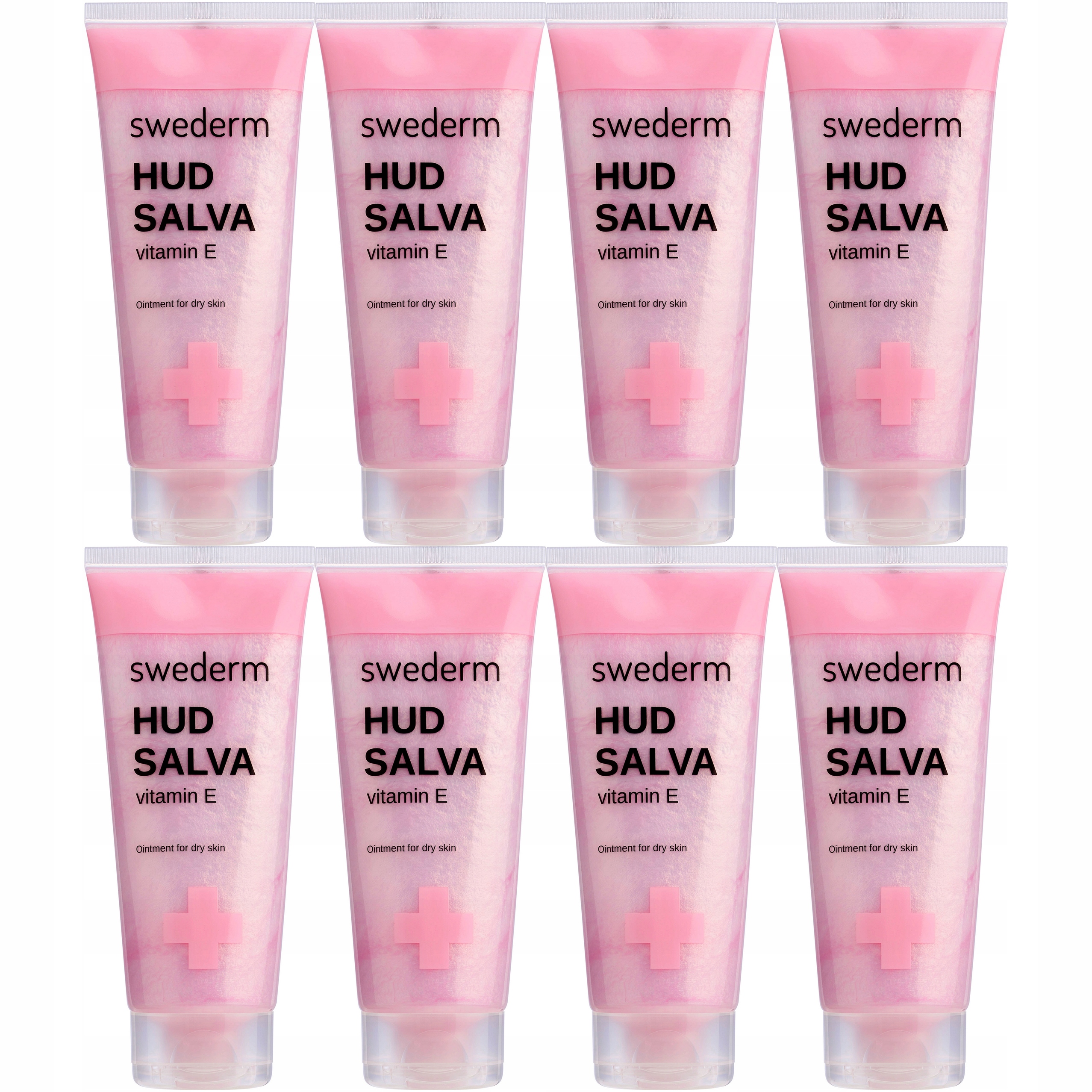SWEDERM Крем для рук Hudsalva vit E, увлажняющая мазь для сухой кожи 800мл (8 х 100мл). ХУДСАЛЬВА ВИТАМИН Е – мазь для сухой кожи. Исключительно эффективная регенерирующая и увлажняющая мазь, идеальная для ежедневного ухода за сухой, обезвоженной и склонной к раздражениям кожей. Его формула воздействует на самые требовательные части тела – руки, ноги, локти и губы – принося немедленное облегчение и длительный комфорт. Нежная парфюмерная композиция превращает ежедневный уход в исключительно приятный ритуал.