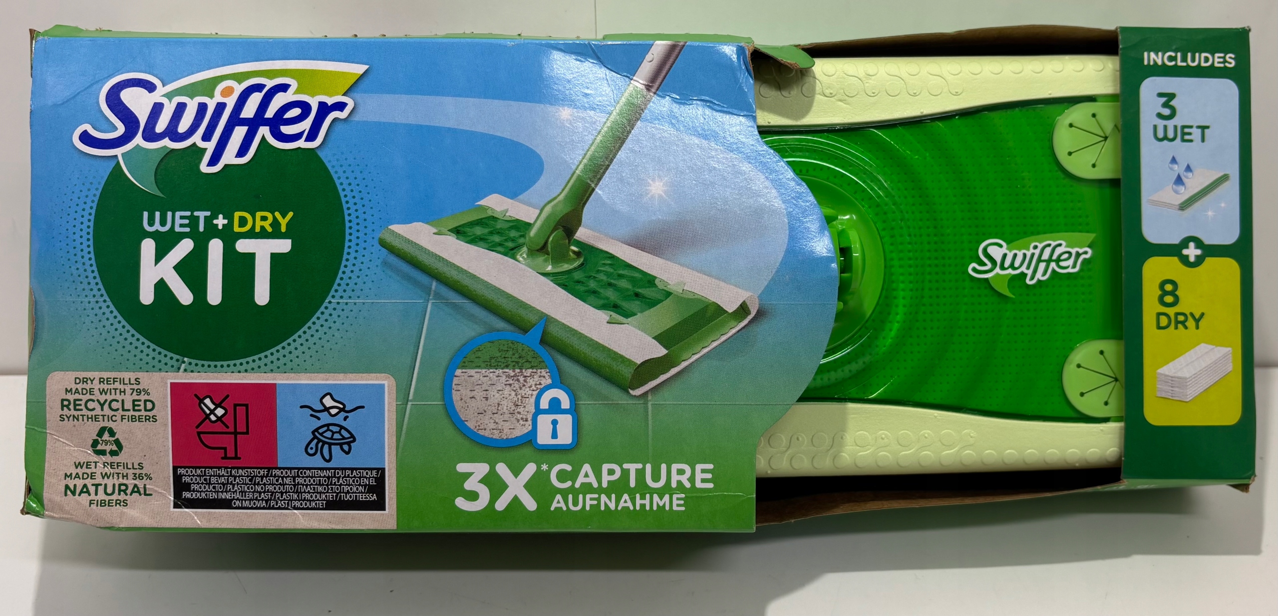 Новый продукт в исходной упаковке h1> поврежденная упаковка h1> Набор стартера Swiffer Mop 8 + 3 влажные сухие вставки + поставки в швабру 12 ПК h1>