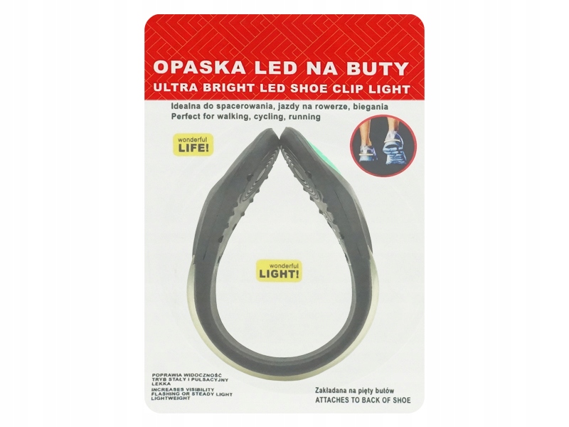 Группа не ограничивается обувью. Вы можете носить его на запястье, прикрепить к сумке, рюкзаку или любому другому месту, которое вы считаете подходящим. Операция интуитивно понятна благодаря кнопке, размещенной на внешней стороне лампы. Включение, выключение и изменение режима освещения просты и удобно.