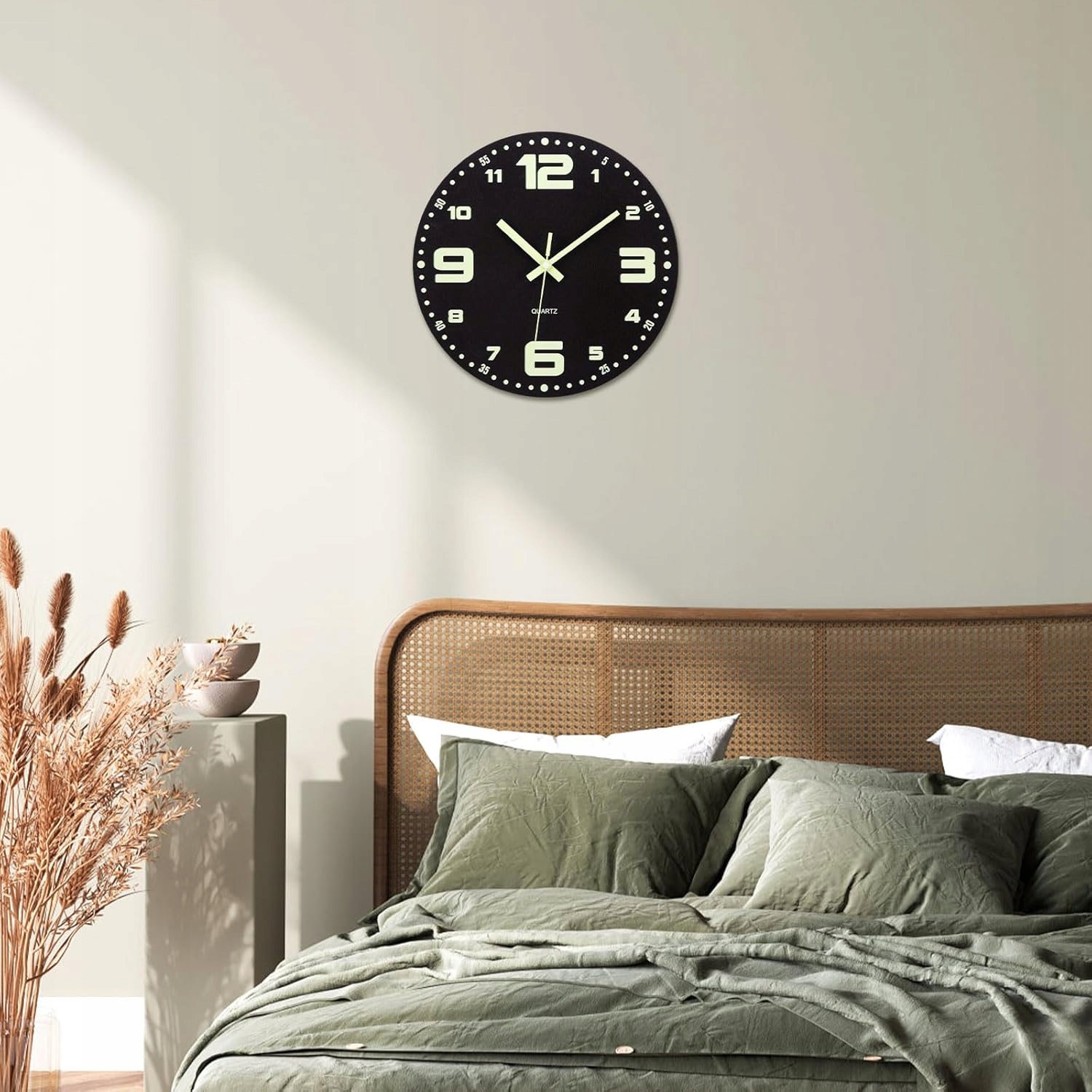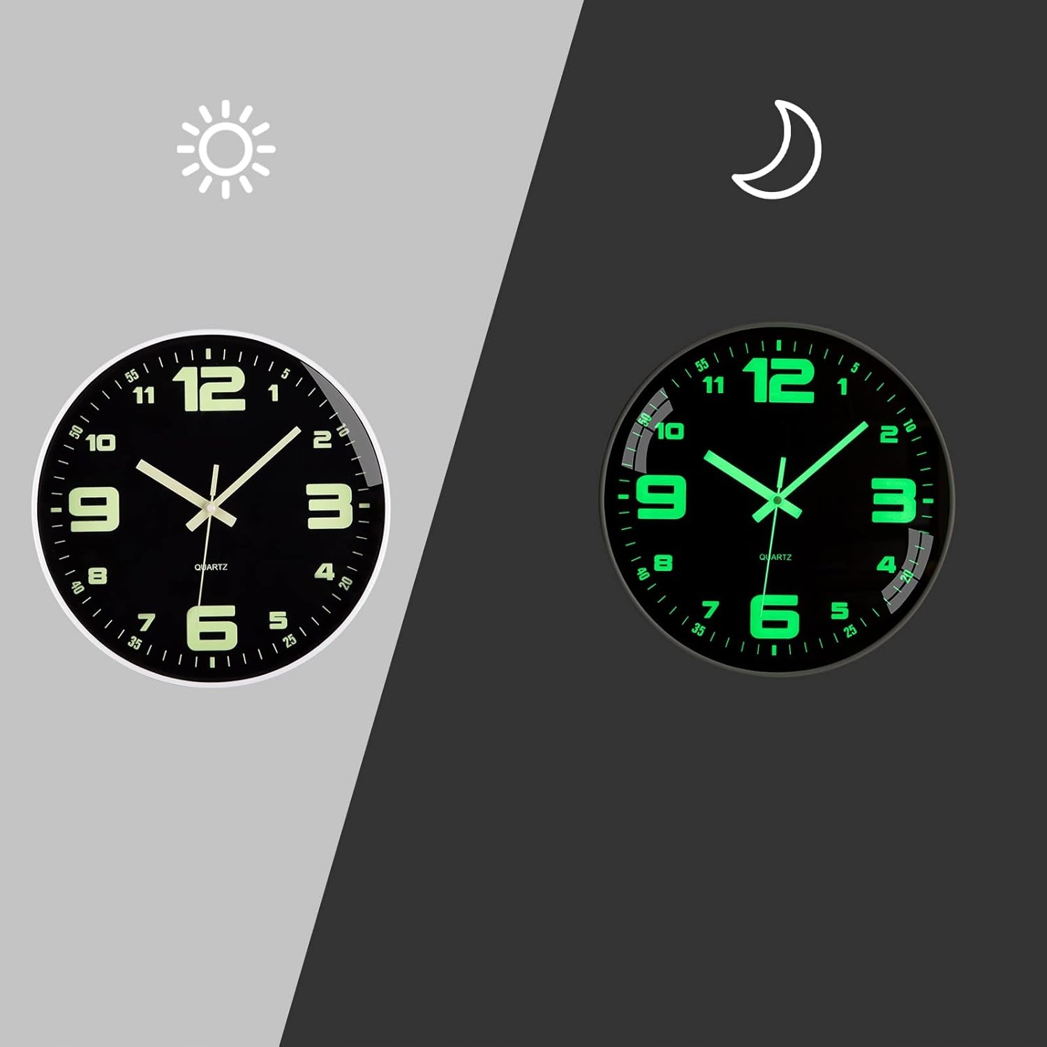 ➡ безмолвное движение - настенные часы используют превосходный механизм широкого масштаба, чтобы обеспечить реальную тишину с плавной второй секундной рукой, почасовой точностью и стабильной эффективностью в течение длительного времени. - Большие числа контрастируют с черным фоном, так что вы можете легко увидеть час под любым углом. Бесплатный дизайн и металлические наконечники добавляют стиль каждому декору.