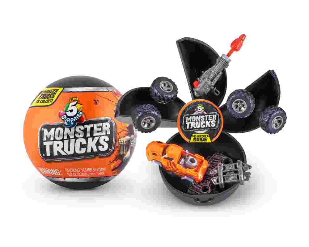 Новая серия аксессуаров и коллекционных фигурок из линейки 5 Surprise. Это один шар, внутри которого спрятано целых 5 сюрпризов. 7 грузовиков-монстров, включая один суперредкий. Каждый из них поставляется со сменными колесами, рамой, бампером, кузовом и даже ракетной установкой. Распаковывайте, собирайте, сражайтесь и участвуйте в гонках!
