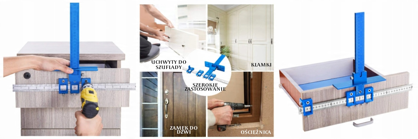 - Отличный инструмент, с помощью которого можно быстро и точно просверлить отверстия для ручек, ручек, дверных ручек, вешалок или других мест, где отверстия могут можно повторять,