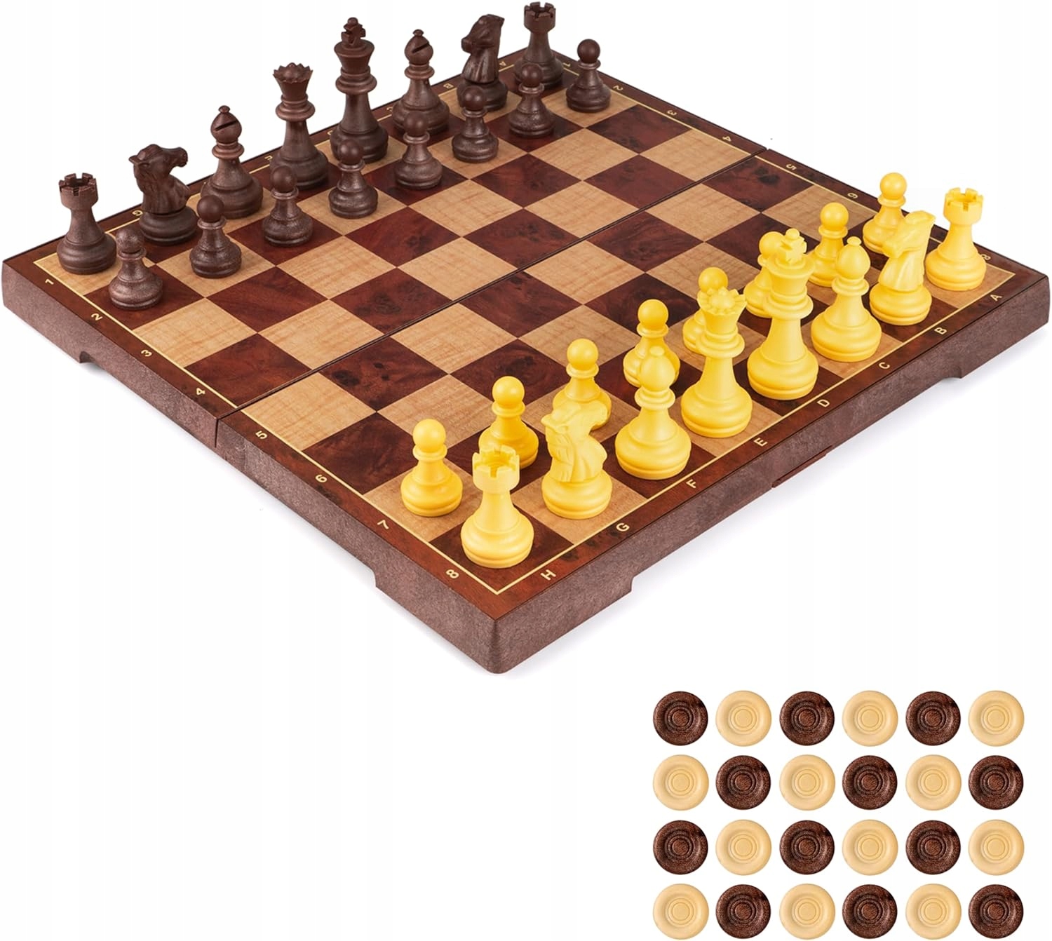 SZACHY MAGNETYCZNE WARCABY ZESTAW Z PRZENOŚNĄ SKŁADANĄ PLANSZĄ 2W1 PREZENT