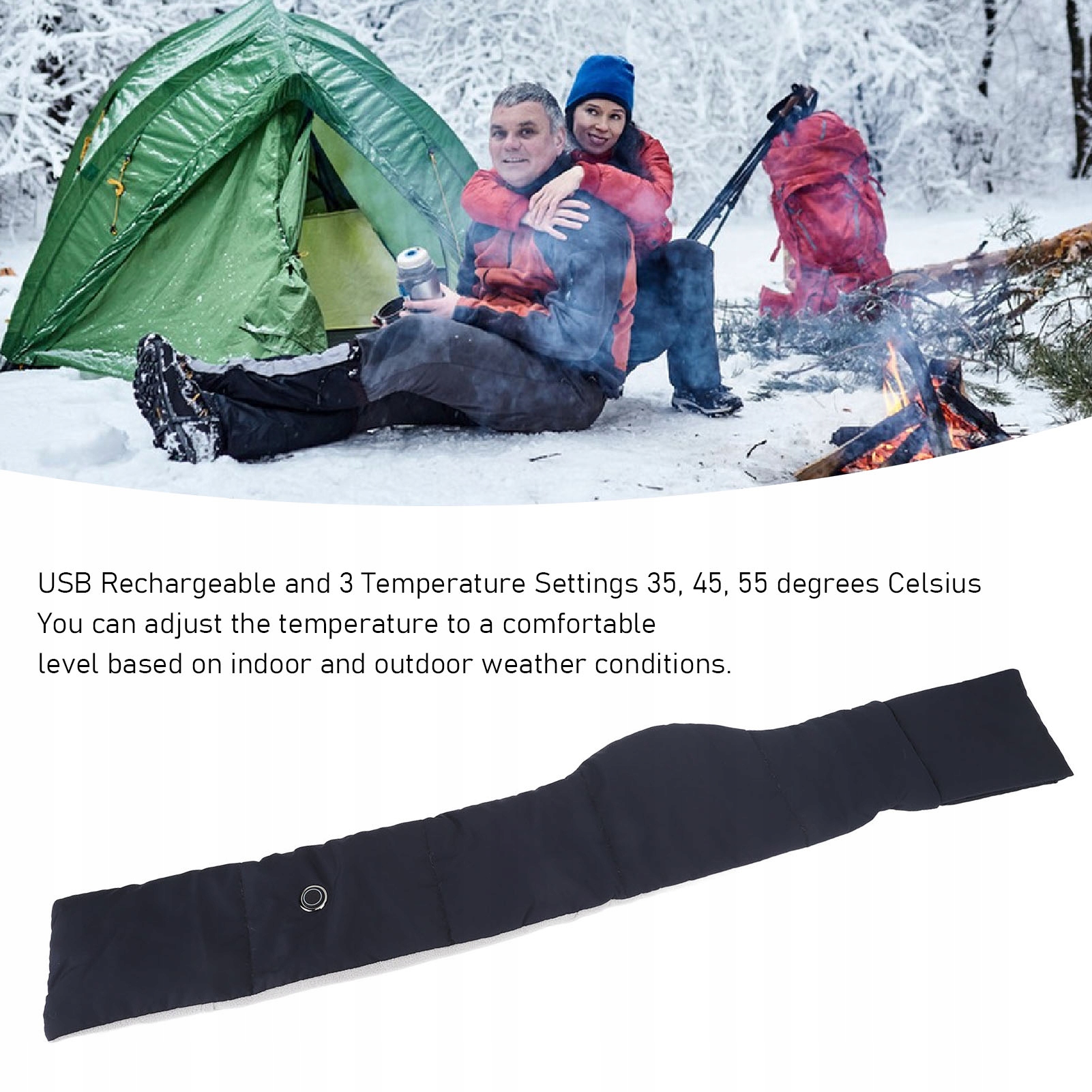 1. Хлопок из углеродного волокна: этот шарф с подогревом изготовлен из хлопкового материала из углеродного волокна, обеспечивающего тепло, воздухопроницаемость, комфорт для кожи и его можно носить в течение длительного времени без дискомфорта. 2.3 Настройки температуры: этот шарф имеет температурный диапазон 35, 45, 55 градусов Цельсия и оснащен интеллектуальной технологией контроля температуры и автоматической защитой питания, обеспечивающей безопасное использование. 3. Легко чистить: наш шейный шарф с электрическим подогревом легко чистится и его можно стирать. Просто не забудьте снять съемный блок питания перед чисткой. (Блок питания в комплект не входит) 4. Универсальное использование: этот перезаряжаемый шарф с подогревом подходит для зимних видов активного отдыха, таких как катание на лыжах, охота, кемпинг и верховая езда. Длина шарфа примерно 105 см. 5. Идеальный подарок: шарф с подогревом станет идеальным подарком как мужчинам, так и женщинам, например, партнеру, родителям, друзьям или пожилым людям, позволяя им вместе наслаждаться теплом.