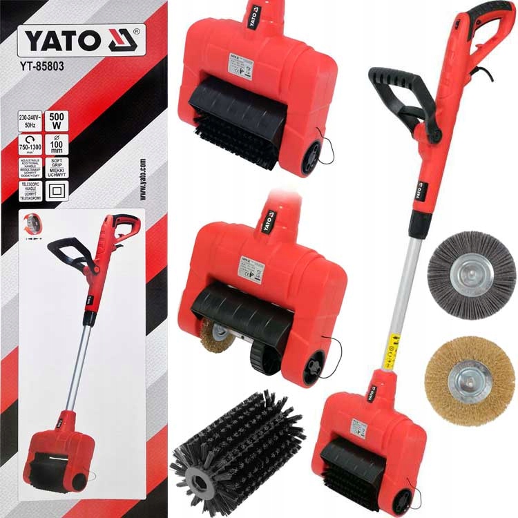 Электрическая щетка YATO, предназначенная для чистки брусчатки и тротуаров.