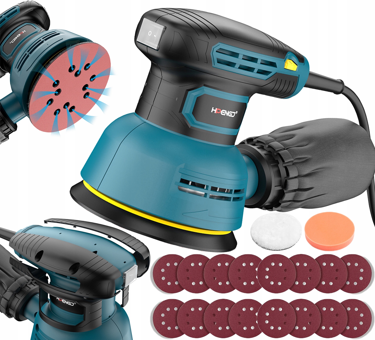 - Мешки для пыли, прикрепленные к орбитальной шлифовальной машине, обеспечивают чистоту рабочей среды, уменьшая ущерб, связанный с уборкой после работы. Пылесборники легко загрязняются, а опилки/мелкая пыль/частицы удобнее убирать.