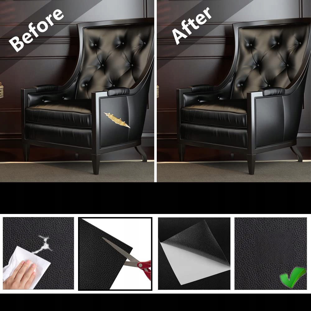 SZTUCZNA SKÓRA SAMOPRZYLEPNA 100 X 140 CM CZARNA SKÓRZANA NASZYWKA DO SOF