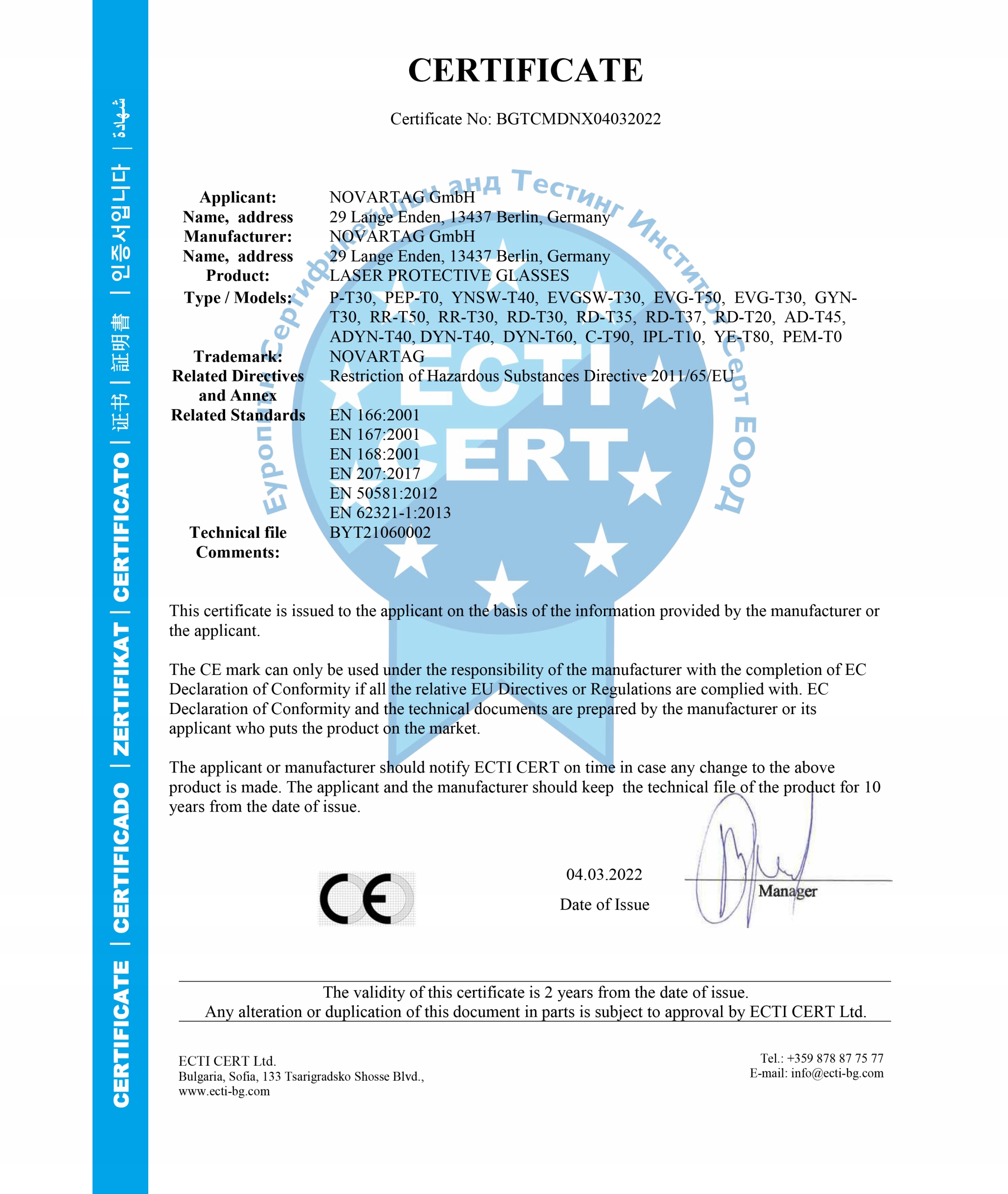 <ул>Сертификация CE/ROHS охватывает следующие стандарты: