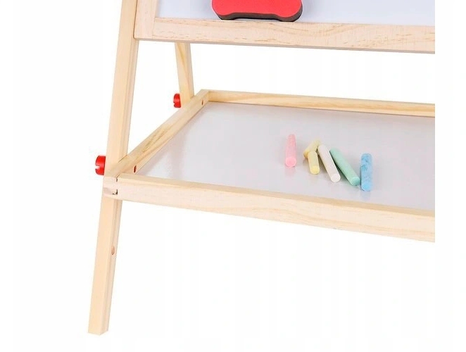 С одной стороны — меловая доска, с другой — магнитная поверхность для письма маркерами. Он идеально подходит для развития художественных навыков рисования мелом или маркером, а также обучения письму.
