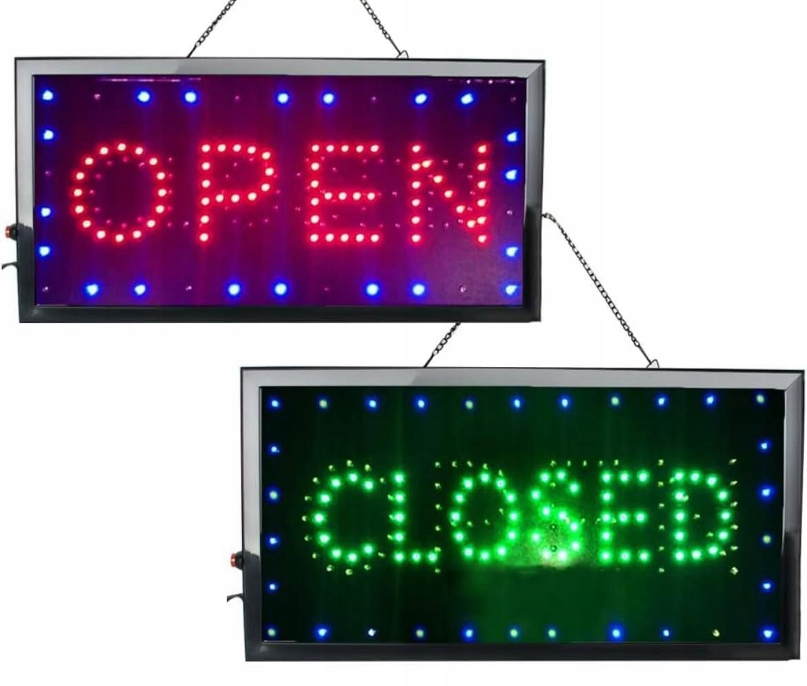 TABLICA ŚWIETLNA REKLAMA OTWARTE OPEN-CLOSED 2w1 NOWOŚĆ 2 NAPISY SZYLD BAR