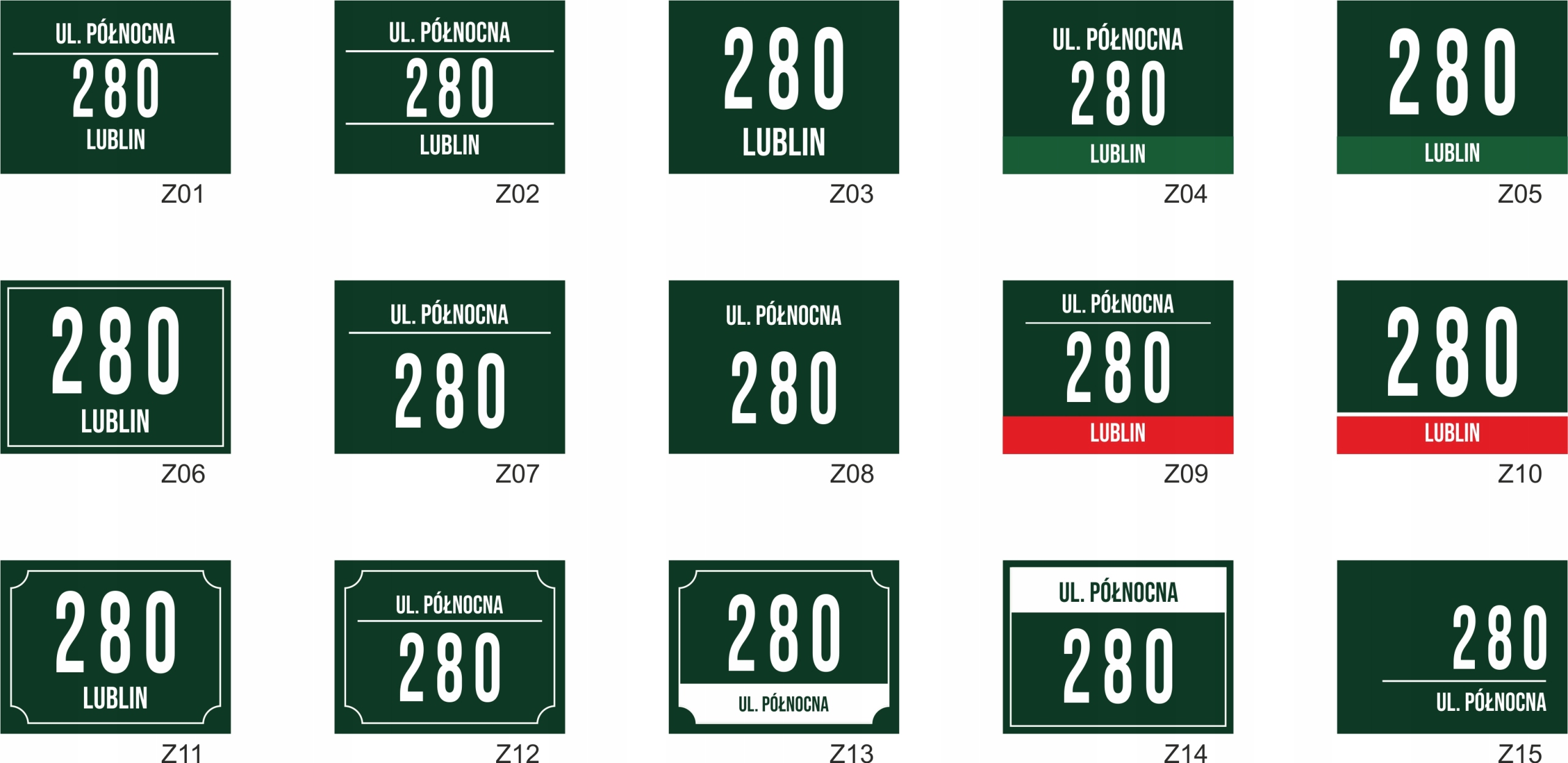 в соответствии с арт. 47b пункт. 1, 2 и 4 Закона от 17 мая 1989 г. Геодезический и картографический закон (консолидированный текст, журнал законов 2017 года, пункт 2101, с поправками), владельцы зданий и управляющие недвижимостью имеют юридическое обязательство поставить адресную пластину в соответствии со следующими принципами: