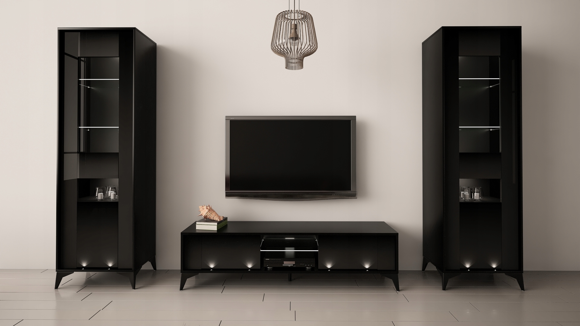 ШКАФ ДЛЯ ТЕЛЕВИЗОРА 160 EVEL 2 MAT ЧЕРНЫЙ ГЛЯНЦЕВЫЙ + LED