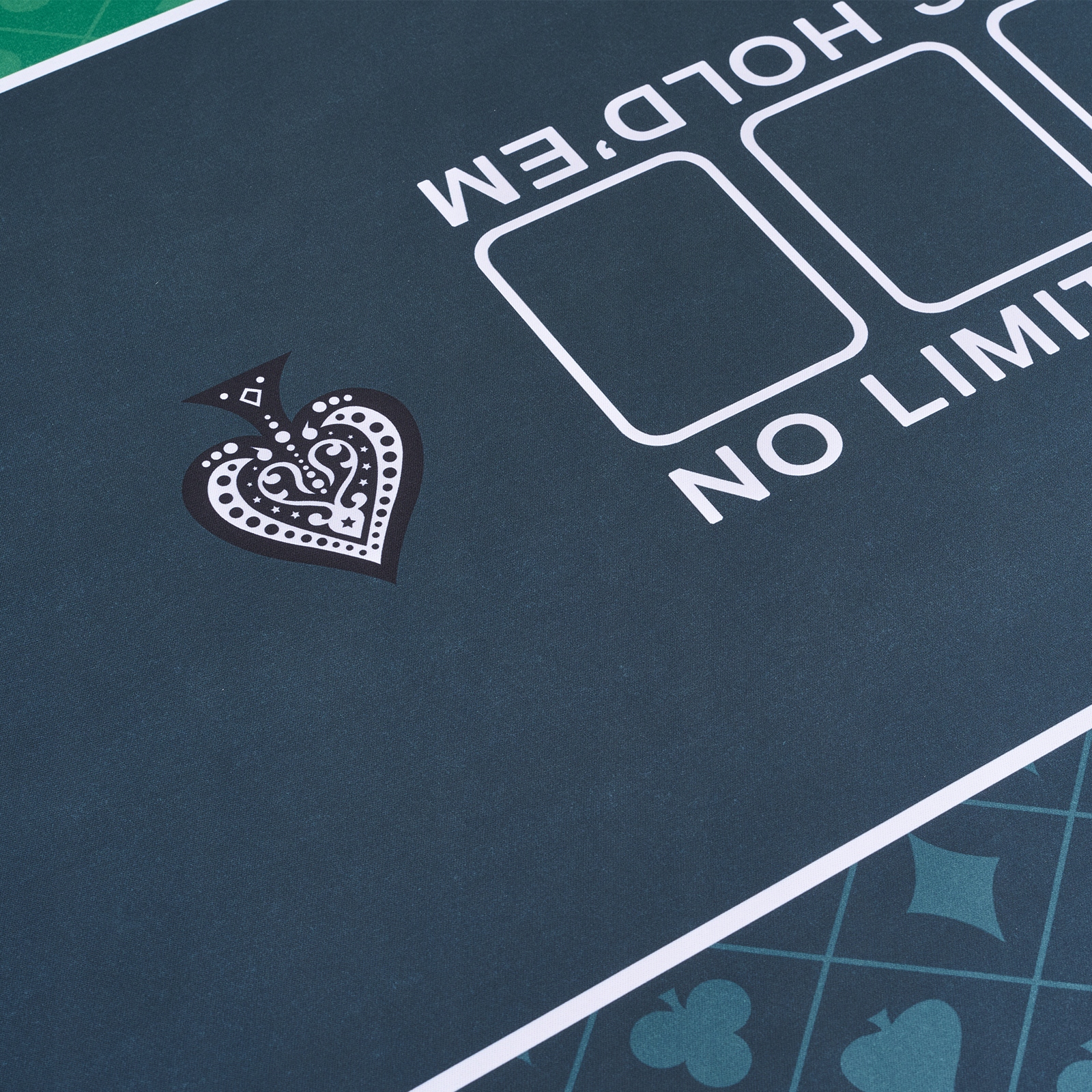Покерный коврик гибкий, и в то же время долговечный, его легко свернуть и спрятать в сумке. Будь то на плече, в машине или в гардеробе - вы можете играть в покер повсюду и в любое время!