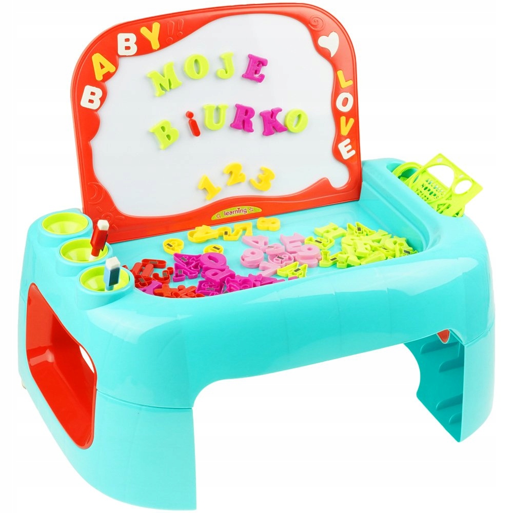 Стол для рисования, который развиваетвоображение и доставляет большое удовольствие для самых маленьких. Также он оснащен множеством уникальных элементов: маркерами, шаблонами (цифрами, буквами)