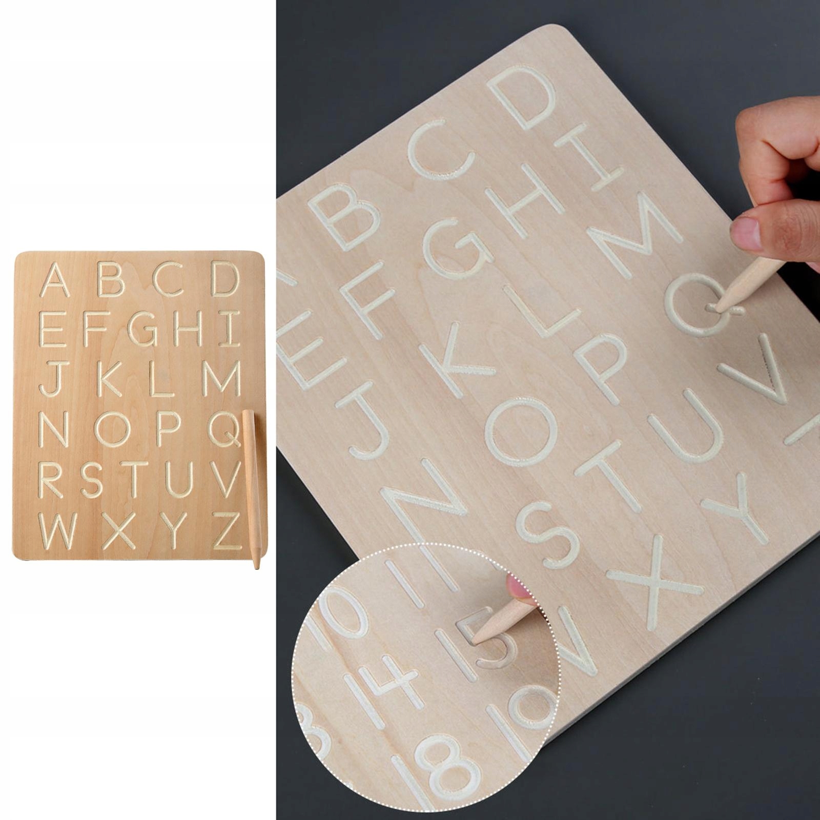 Дети младшего возраста могут просто использовать палец, чтобы начать учиться обводить буквы/цифры, а дети постарше, готовые писать, могут использовать прилагаемый деревянный стилус, чтобы развить силу рук и пальцев, необходимую для правильного письма.