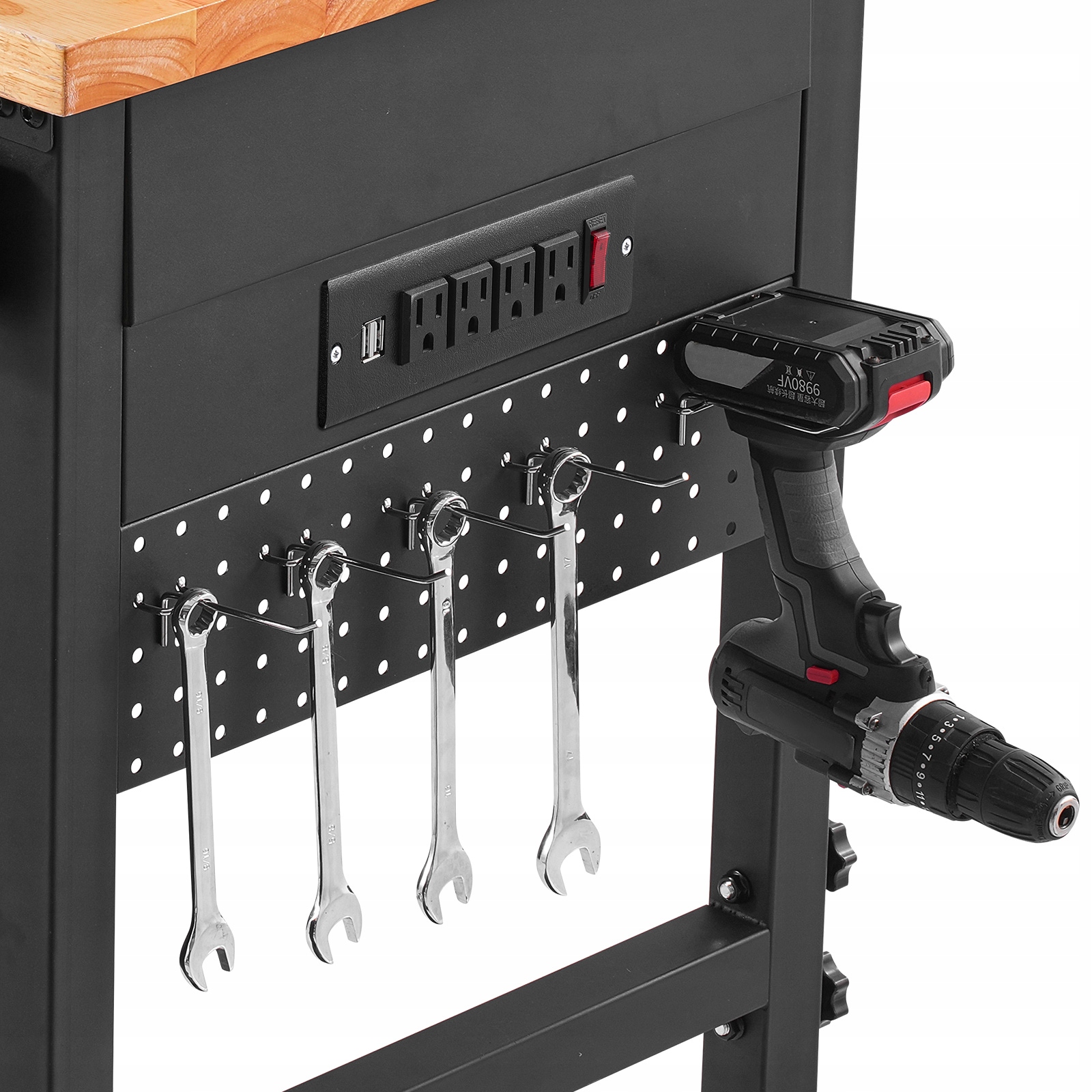 Обновите свое рабочее пространство с помощью нашего прочного рабочего места. Столешница из массива дуба, прочная стальная рама, легко скользящие колеса, организованное хранение и встроенный источник питания — это лучший компаньон для мастеров, мастеров и любителей DIY. Давайте начнем создавать ваш следующий шедевр!