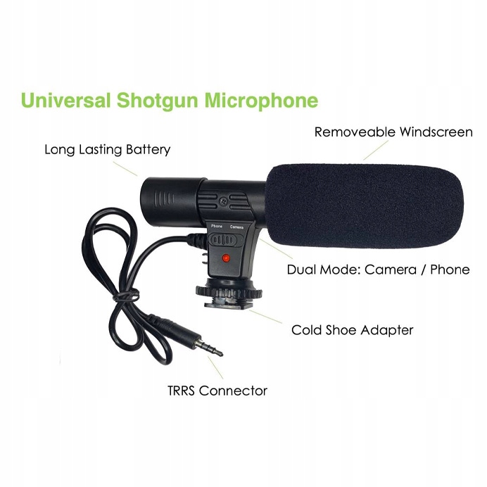 Компактный микрофон-пушка: совместимость с микрофоном диаметром 3,5 мм предназначена для усиления звука с вашего смартфона.