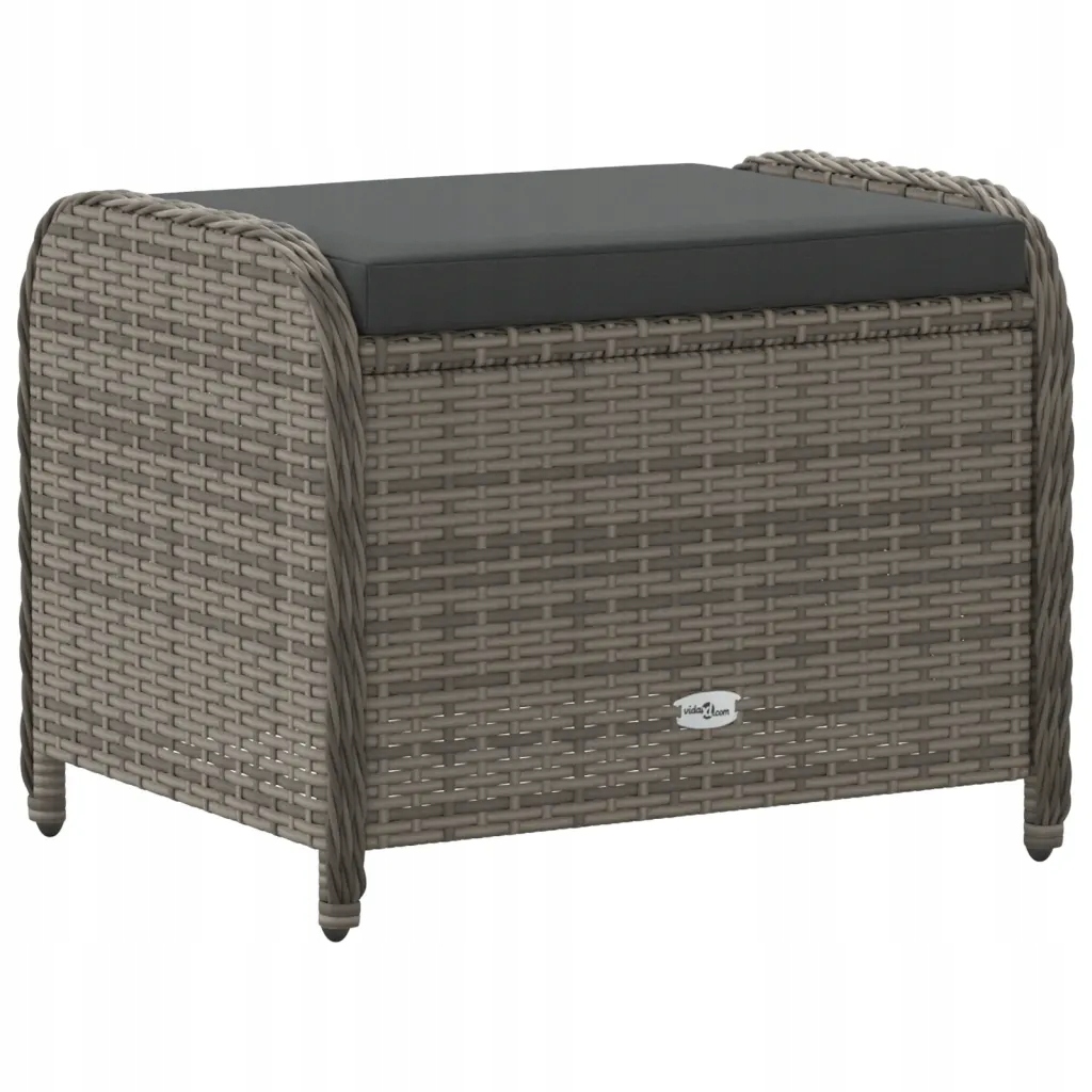 Садовый табурет из ротанга с подушкой - серый 58x46x46 см