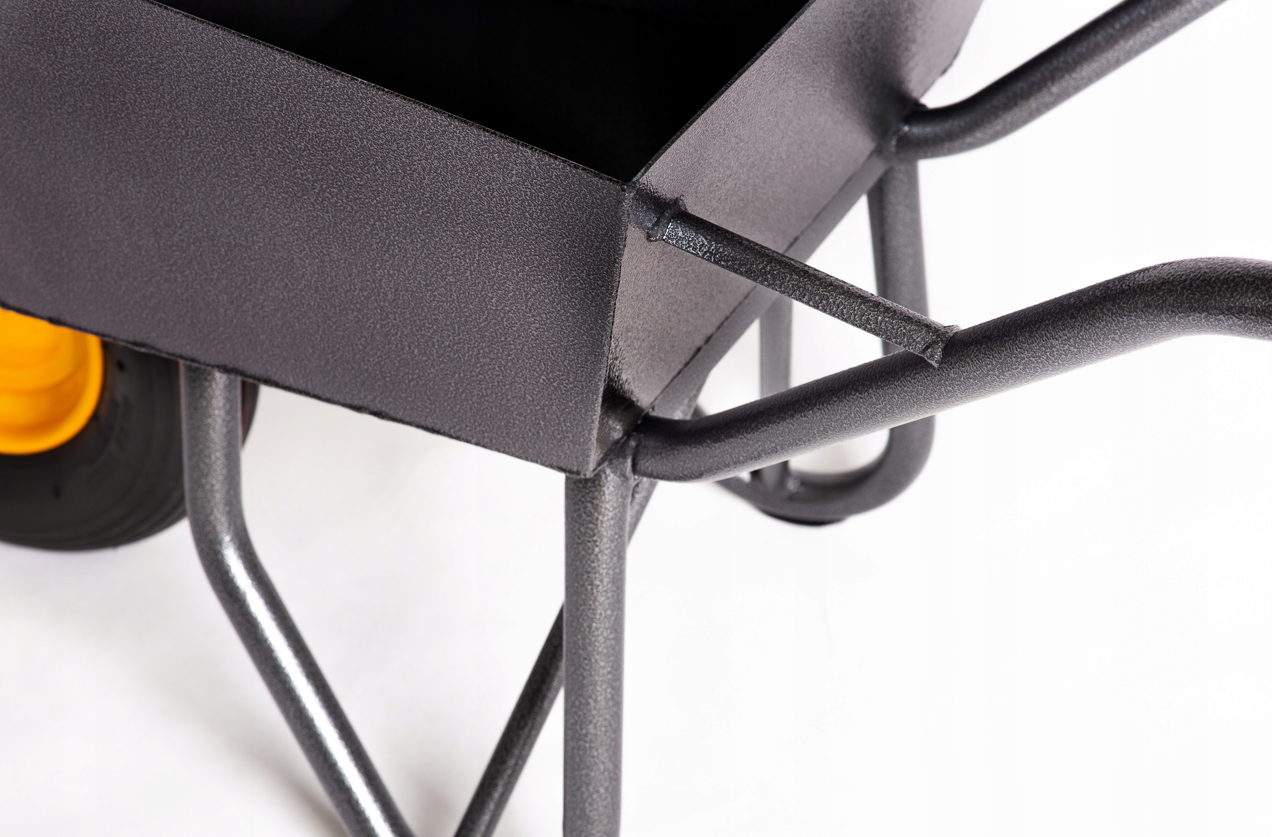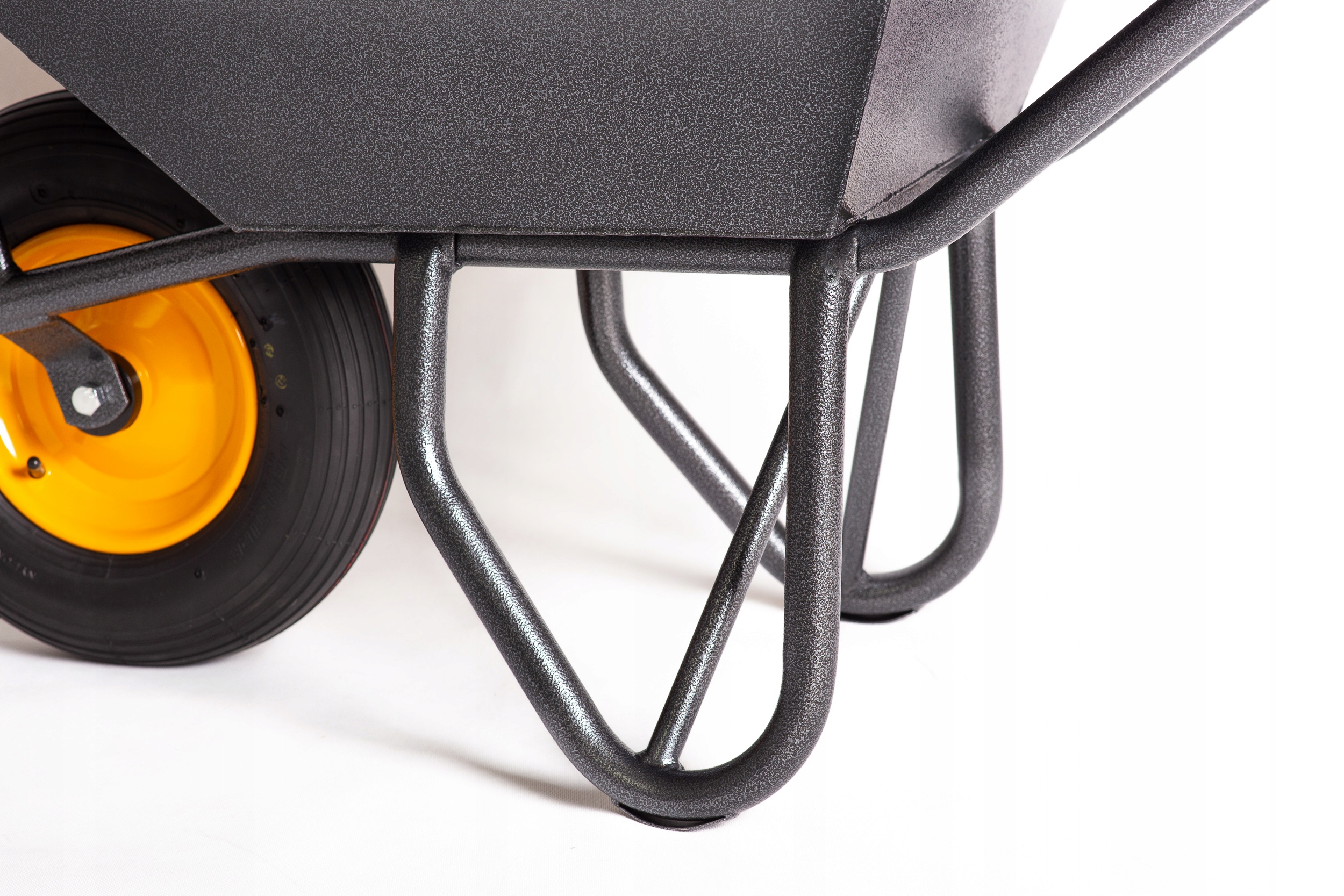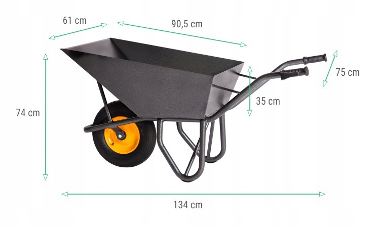 Надежная и наиболее часто выбираемая тачка для дорожных работ. / Сварная рама и чаша, покрыты порошковой структурной краской с эффектом молотка.