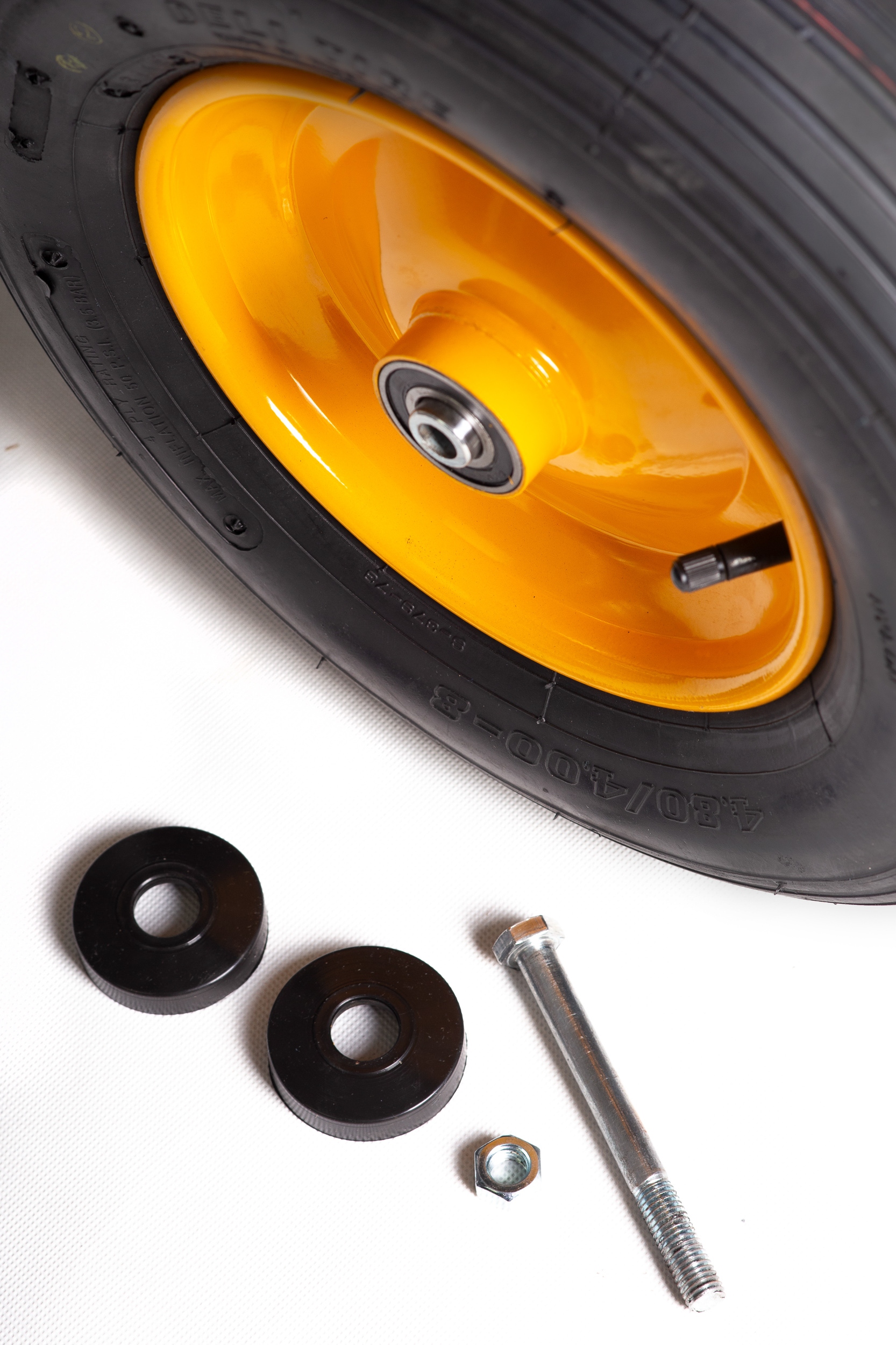 - Размеры колес: диаметр 400 мм, ширина 100 мм, диаметр ступицы: 20 мм