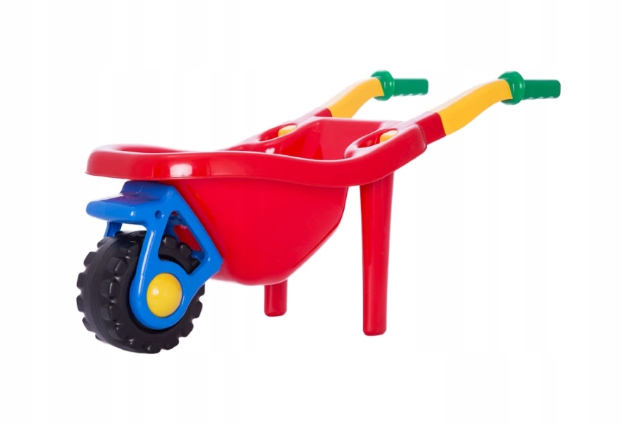 Наш малыш с радостью перевезет необходимые для игры аксессуары в тачке.