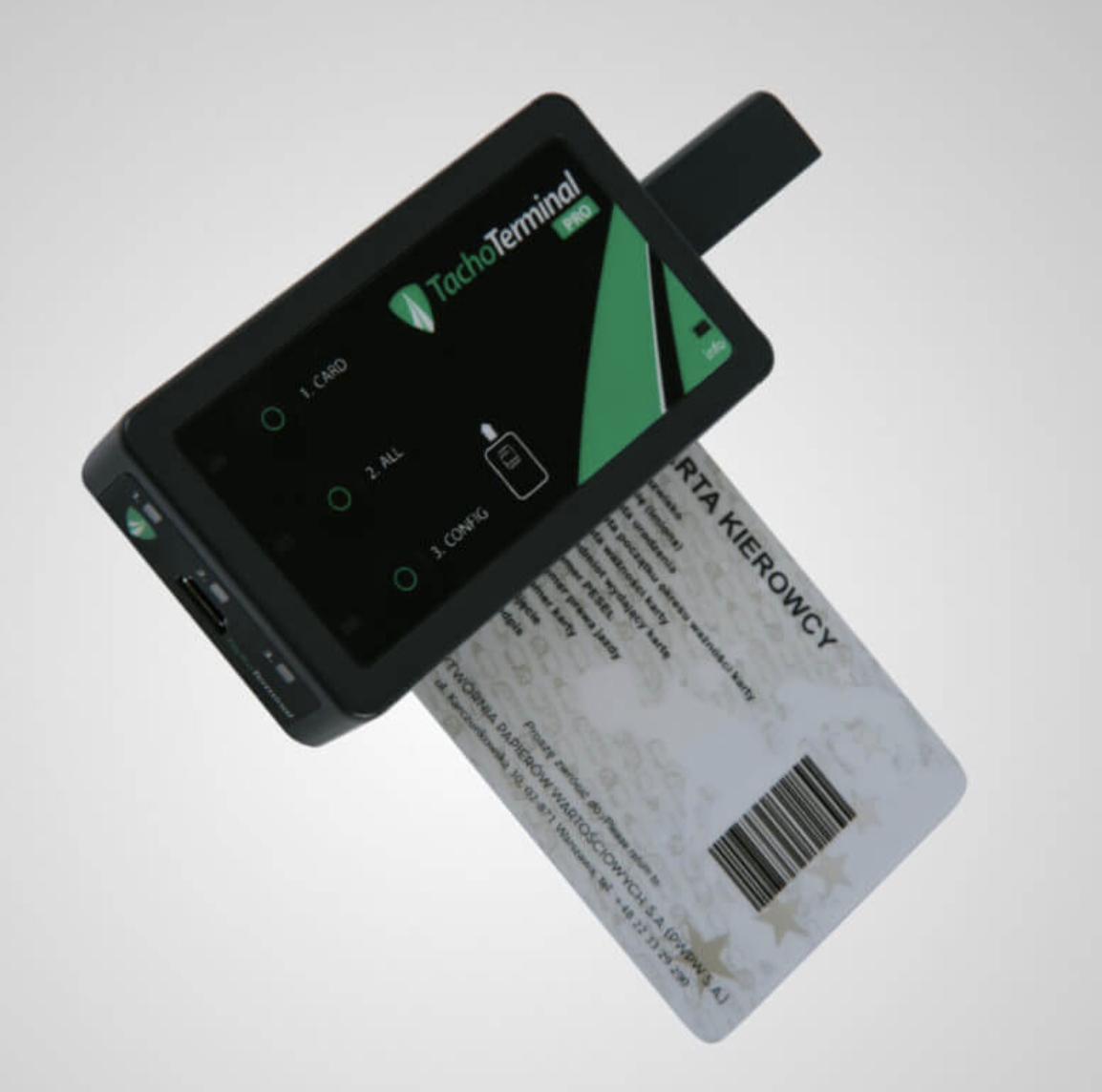✅ Tachoterminal Pro - это современное устройство для загрузки данных со карт водителя и из цифровой тахографии, сочетая преимущества компактных передаточных клавиш и универсальных устройств. В любом месте встроенного сдача смарт -карт и вашего собственного источника питания. Устройство также обеспечивает эффективную и быструю загрузку данных с цифровой тахографии.