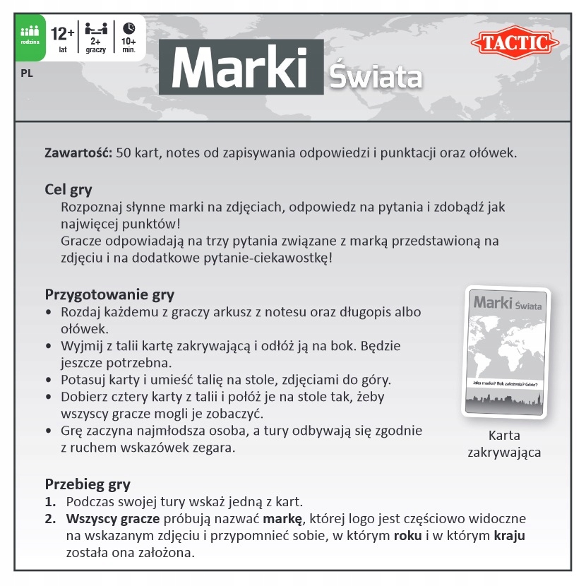 Приобретая «Tactic Gra Marki świata - quiz» данный товар из каталога «Словесные и числовые» вы можете быть уверены, что после оформления заказа, доставки в Украину, вы получите именно то, что заказывали, в оговоренные сроки и европейского качества.