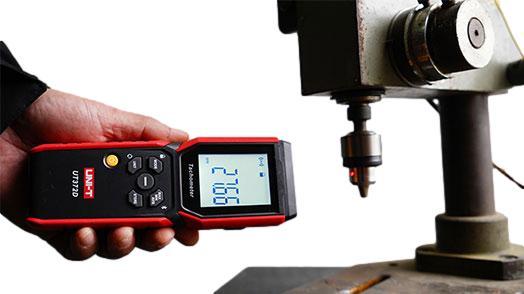 Тахометр UT372D 2-в-1 — надежный и безопасный тахометр, сочетающий в себе контактные и бесконтактные измерения. контактные режимы измерения. В основном он используется для измерения числа оборотов в минуту (об/мин), частоты, поверхностной скорости и длины в двигателях, вентиляторах, автомобилях, бумажном производстве и т. д.