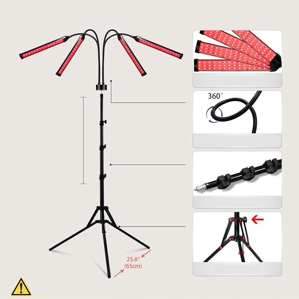 Этот красный свет был разработан для простоты использования. Он имеет регулируемый штатив и гибкая шея для идеального позиционирования. Он имеет функцию таймера (10/20/30 минут) и надежные функции безопасности, так что вы можете пользоваться преимуществами красного света в любое время и место со спокойствием.