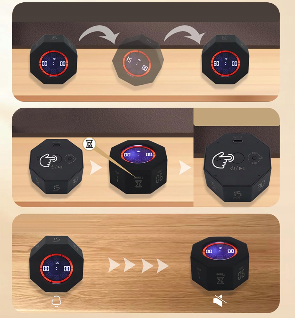 МИНИ-ТАЙМЕР ПОМОДОРО, ВРАЩАЮЩИЙСЯ ЧАСОВОЙ КУБ-ТАЙМЕР, СВЕТОДИОДНЫЙ ТАЙМЕР ГРАВИТАЦИОННОГО ФЛИПА