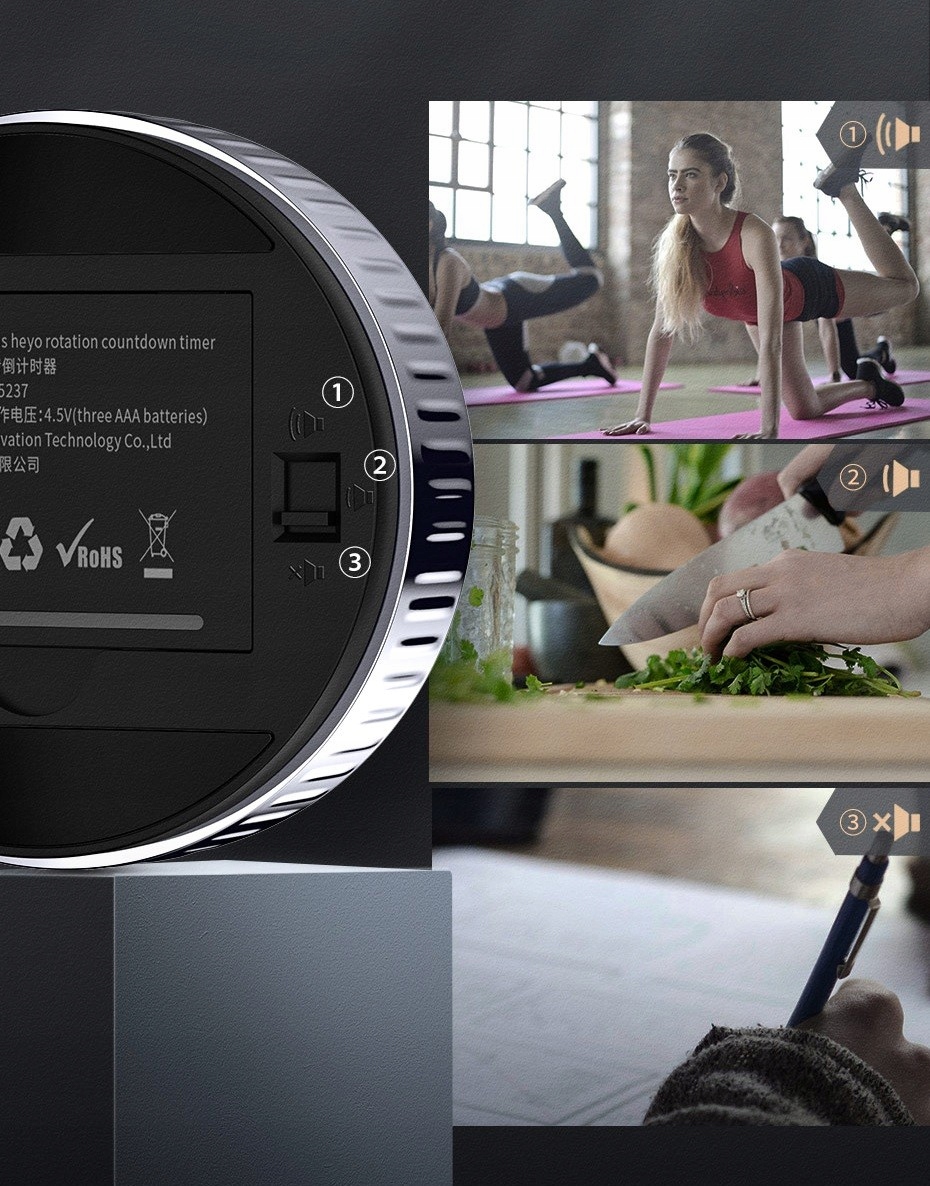 Таймер легко регулируется поворотом корпуса. Благодаря большому дисплею вы можете видеть обратный отсчет даже на расстоянии. Если вы не хотите слышать звук, информирующий вас об окончании времени, вы можете полностью отключить функцию звука.
