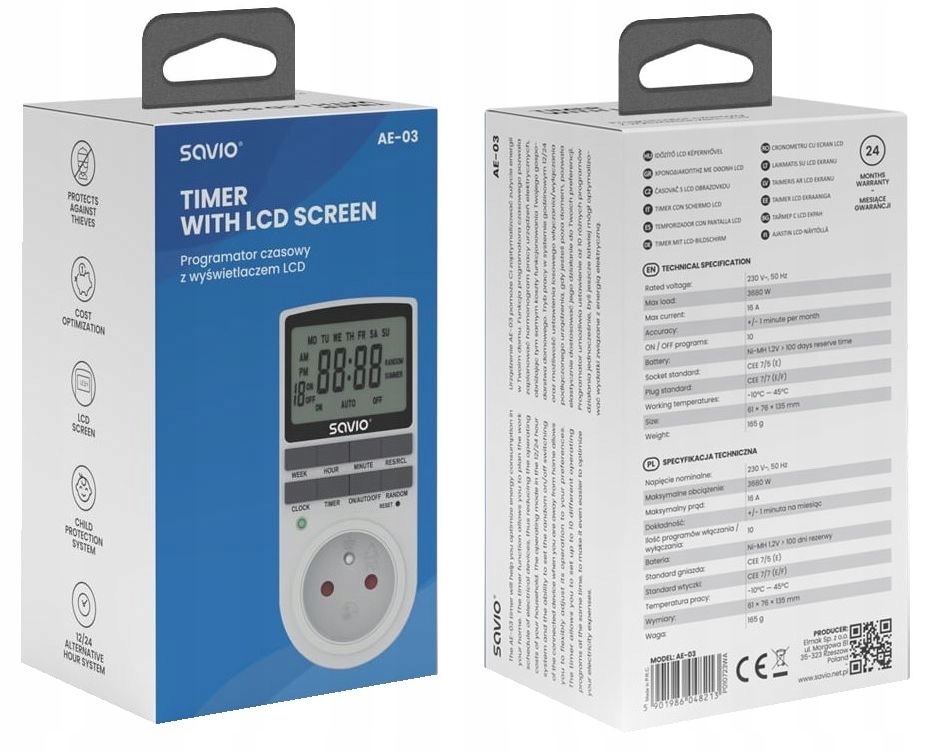 Электронный программист AE-03 с функцией обслуживания памяти. Временный переключатель может быть использован для автоматического, временного переключения и выключения различных домашних приборов для экономии энергии , моделирования присутствия членов домохозяйства , управления электрическим нагревом и освещения комнат, аквариумов, террарисов и многих других применений. Таймеры (максимум 10 переключателей в день).