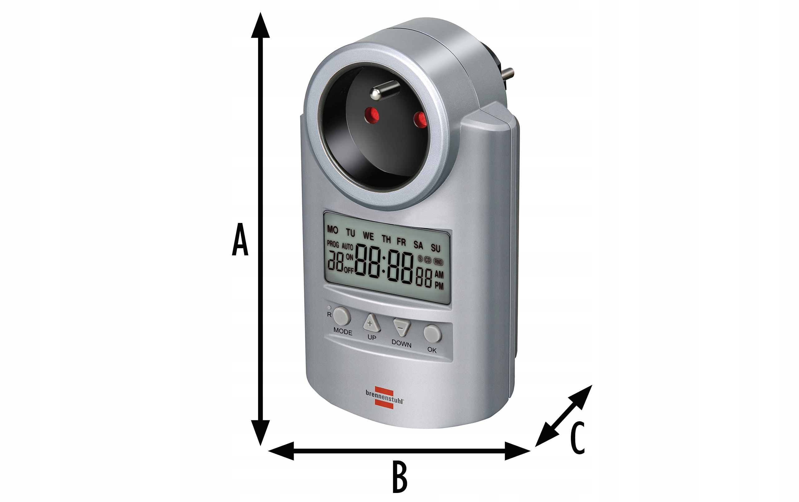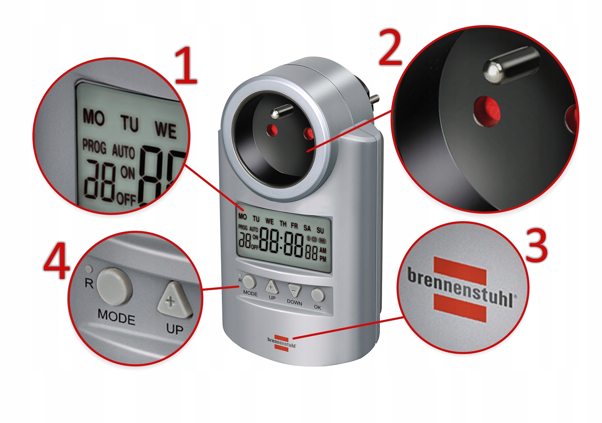 Цифровой таймер от BRENNENSTUHL убеждает качеством и безопасностью во всех сферах. Дни недели и часы отображаются в 12- и 24-часовом формате.