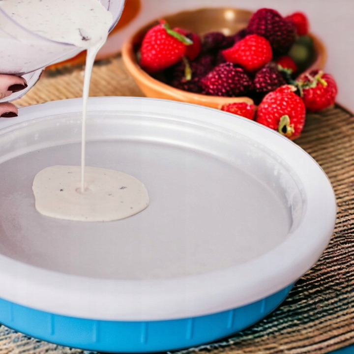 *Мороженица не имеет внешнего охлаждения, поэтому относитесь к ней как к интересному гаджету/игрушке для приготовления тайского мороженого дома с детьми в качестве игры или с друзьями. Чтобы ускорить процесс замораживания, рекомендуем после нанесения смеси тонким слоем поместить форму в морозильную камеру на 5 минут.