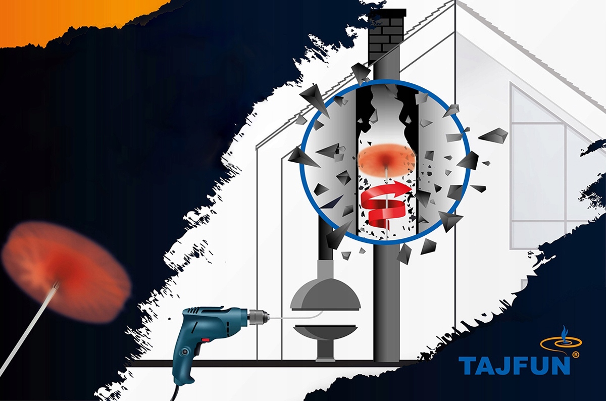 Он справится даже с очень сильными загрязнениями - Высокоскоростные щетки с закрученным ворсом соскребают отложения, не царапая стенки дымохода.